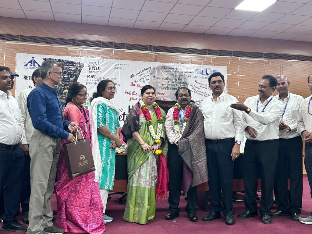 బేగంపేట విమానాశ్రయం లో గత మూడు సంవత్సరాలుగా డైరెక్టర్ గా సేవలు అందించిన పీకే హజారి శనివారం పదవి విరమణ చేశారు. ఈ సందర్భంగా ఆయన సేవలను కొనియాడుతూ నూతనంగా బాధ్యతలు చేపట్టిన వరుదు వీ రావు, మరియు విమానాశ్రయ ఉద్యోగులు పీకే హజారి దంపతులను ఘనంగా సన్మానించారు. ఈ సందర్భంగా ఏర్పాటుచేసిన కార్యక్రమంలో బేగంపేట విమానాశ్రయం నూతన జనరల్ మేనేజర్ గా ఎయిర్పోర్ట్ డైరెక్టర్ గా బాధ్యతలు స్వీకరించిన వరుదు వి రావు మాట్లాడుతూ బేగంపేట విమానాశ్రయం కు ఎంతో చరిత్ర ఉందని అలాంటి విమానాశ్రయంలో సేవలందించిన పీకే హజారి ని తాను అభినందిస్తున్న అన్నారు. ఈ విమానాశ్రయంలో వీవీఐపీల రాకపోకలతో ఎంతో బిజీగా ఉంటుందని ,ఇలాంటి చోట బాధ్యతలు నిర్వర్తించడం ఎంతో జాగ్రత్తతో కూడిన విషయం అన్నారు. తన మూడేళ్ల హయాంలో ఉద్యోగులతో సన్నిహిత సంబంధాలు నెరిపి అందరి ఆదరాభిమానాలు చూరగొన్న పీ.కే.హాజరీ తన శేష జీవితాన్ని ఆనందంగా గడపాలని తామంతా మనస్పూర్తిగా కోరుకుంటున్నాము అని ఆయన అన్నారు. ఈ సందర్భంగా పీకే హజారే మాట్లాడుతూ బేగంపేట విమానాశ్రయంలో తన సిబ్బంది సహకారంతోనే మూడేళ్ల పాటు సేవలు అందించగలిగేనన్నారు అందరి సహకారాన్ని తాను గుర్తుంచుకుంటానన్నారు తనపై ప్రేమాభిమానాలు చూపిన ప్రతి ఉద్యోగికి హృదయపూర్వక కృతజ్ఞతలు తెలియజేశారు నూతనంగా బాధ్యతలు చేపట్టిన వరుదు వీ రావుకు కూడా ఉద్యోగులంతా తమ సహకారాన్ని అందించాలని కోరుతూ అభినందనలు తెలియజేశారు.ఈ కార్యక్రమం లో జనరల్ మేనేజర్లు గోప కుమార్,కే.ఎస్.రావు,తదితరులు పాల్గొన్నారు.