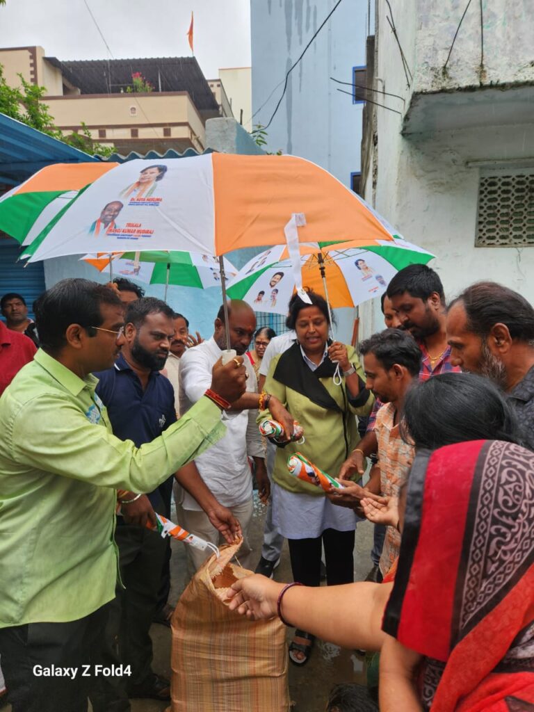 ప్రజలకు ఎలాంటి కష్టం వచ్చినా వారికి కాంగ్రెస్ పార్టీ అన్ని విధాలుగా అండగా నిలుస్తుందని సనత్ నగర్ నియోజకవర్గం కాంగ్రెస్ పార్టీ ఇన్చార్జ్ డాక్టర్ కోట నీలిమ అన్నారు. ఆదివారం రాంగోపాల్ పేట్ డివిజన్ పరిధిలోని అసుర ఖానా లో కాంగ్రెస్ పార్టీ ఏ బ్లాక్ అధ్యక్షులు త్రికాల మనోజ్ కుమార్ ఆధ్వర్యంలో నిర్వహించిన చత్రీల పంపిణీ కార్యక్రమంలో కోట నీలిమ ముఖ్య అతిథిగా పాల్గొన్నారు. ఈ సందర్భంగా ఆమె మాట్లాడుతూ నగరంలో గడచిన నాలుగు రోజులుగా కురుస్తున్న వర్షాలకు భారీ ఎత్తున నీరు రోడ్లపై నిలిచిపోతుందని, ఇలాంటి తరుణంలో ప్రజలు ఇళ్లకే పరిమితం కావాలన్నారు. మరో రెండు రోజులపాటు తుఫాన్ ప్రభావం ఉంటుందని అత్యవసరమైతే తప్ప బయటకు రావద్దన్నారు. ఈ సందర్భంగా ఆమె బస్తి బస్తీలో పర్యటించారు.ఈ సందర్భంగా ఆసుర ఖానా గల్లీలో 50 మంది కుటుంబాలకు