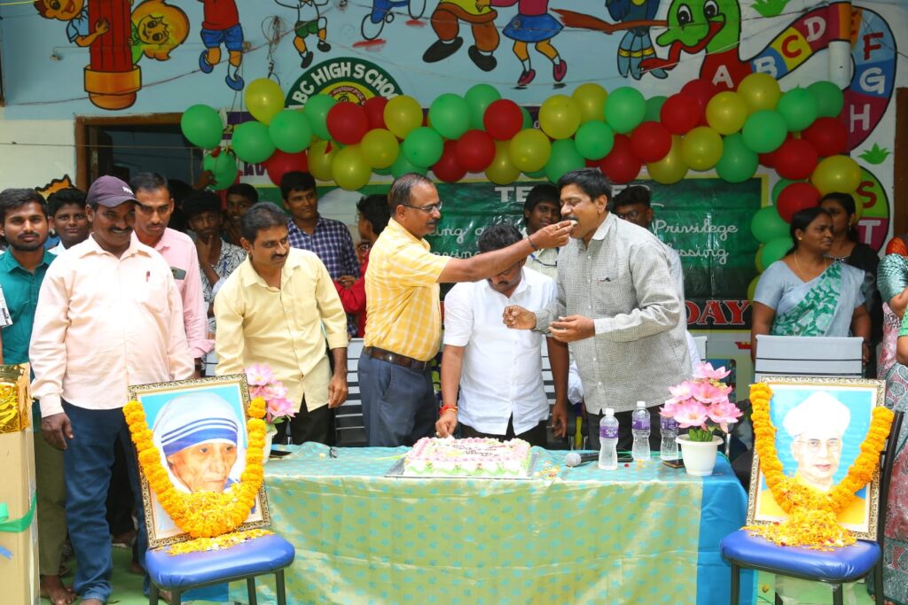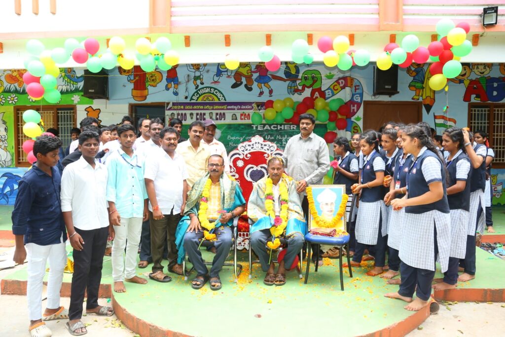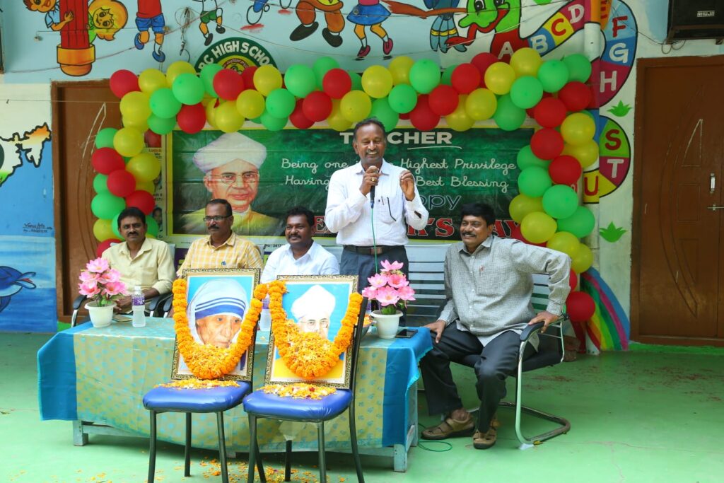ప్రధానోపాధ్యాయుడు కె. వెంకటేశ్వరరావు మాట్లాడుతూ నేటి ఉపాధ్యాయులు విద్యార్థులకు సమాజం పట్ల అవగాహన కల్పించాల్సిన బాధ్యతను చెప్పారు. చదువులంటే కేవలం పుస్తకాలలో పాఠ్యాంశాలను చెప్పటం కాదని, సమాజంలోని మంచి చెడులను విద్యార్థులకు చెప్పాల్సిన బాధ్యతను వివరించారు. ఉపాధ్యాయులు విద్యార్థులను తీర్చిదిద్దటంలో తల్లిదండ్రులు ఉపాధ్యాయులకు సహకరించాల్సిన అవసరాన్ని వివరించారు. డైరెక్టర్ కాలేషాబాబు మాట్లాడుతూ అజ్ఞానాన్ని పాదద్రోలి విజ్ఞానాన్ని అందిచే వారు ఉపాధ్యాయులని, ఉపాధ్యాయులు నిత్యం నూతన విద్యార్థి వలే జ్ఞానాన్ని సమపార్జిస్తూ ఉన్న నాడే మంచి ఉపాధ్యాయుడుగా విద్యార్థులకు న్యాయం చెయ్యగలుగుతారని చెప్పారు. అనంతరం పదవ తరగతి విద్యార్థులు ఉపాధ్యాయులను సన్మానించారు. ఉపాధ్యాయుల దీవేనలు అందుకున్నారు. ముందుగా ఎంఈఓ జి. సుబ్బయ్య, ఎంఈఓ-2 సుధాకర్ రావులకు పాఠశాల యాజమాన్యం ఘన స్వాగతం పలికారు. సర్వేపల్లి రాధాక్రిష్ణ చిత్ర పటానికి ఘన నివాళి అర్పించారు. కార్యక్రమంలో ఉన్నత పాఠశాల ఉపాధ్యాయులు (ఎస్.ఏ)లు బి. కొండల రావు, వెంకటరావు, స్వరూపరాణి, చిరంజీవి, విక్రమ్ రెడ్డి ,సుష్మిత తదితరులు పాల్గొన్నారు.