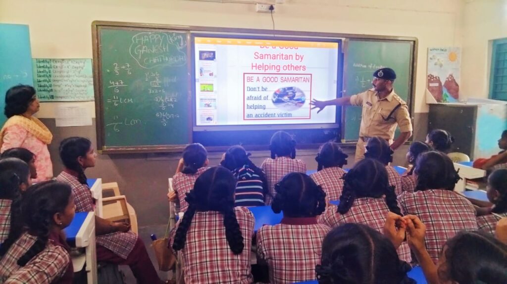 ప్రతి ఒక్కరూ ట్రాఫిక్ నిబంధనలు విధిగా పాటించాలని బేగంపేట ట్రాఫిక్ ట్రైనింగ్ ఇన్స్టిట్యూట్ ఎసిపి జి శంకర్ రాజు అన్నారు. శుక్రవారం లాలాపేట ప్రభుత్వ బాలికల ఉన్నత పాఠశాల విద్యార్థులకు రోడ్డు ప్రమాదాలు మరియు నివారణ అనే అంశంపై పవర్ పాయింట్ ప్రజెంటేషన్ ద్వారా అవగాహన కలిగించారు. ఈ సందర్భంగా ఏసిపి శంకర్ రాజు మాట్లాడుతూ మైనర్లు (18 సంవత్సరాల లోపు పిల్లలు) వాహనాలు నడపరాదని ఆది చట్టరీత్య నేరమని తెలిపినారు. అలా వాహనాలు నడిపినచో తల్లిదండ్రులు మరియు వాహన యజమానికి జైలుశిక్ష పడే అవకాశం ఉంది మరియు 25,000 జరిమానాతో పాటు వాహనం యొక్క రిజిస్ట్రేషన్రద్దు చేయబడుతుంది. రోడ్ క్రాస్ చేసేటప్పుడు జీబ్రా లైన్ వద్ద మాత్రమే క్రాస్ చెయ్యాలి అని తెలియజేసినారు. రోడ్డు ప్రమాదాల నివారణ అనేది ప్రతి ఒక్కరి బాధ్యత. అందుకు రహదారులపై విధిగా ట్రాఫిక్ నిబంధనలు పాటించాలి. సిగ్నల్ జంపింగ్ అతి ప్రమాదకరం, ముఖ్యంగా రెడ్ సిగ్నల్ పడినప్పుడు తప్పనిసరిగా వాహనం ఆపాలి. లైసెన్స్ లేకుండా డ్రైవింగ్ చేస్తే జరిమానా మరియు మూడు నెలల జైలు శిక్షను కూడా విధిస్తారు. వాహనం నడిపేటప్పుడు తప్పని సరిగా హెల్మెట్ ధరించాలి, వాహనం వెనుక కూర్చున్న వ్యక్తి కూడా తప్పని సరిగా హెల్మెట్ ధరించాలి అని తెలియజేసినారు. ఇట్టి కార్యక్రమములో సుమారు 100 మంది విద్యార్థులు మరియు హెడ్ మాస్టర్ ప్రతాప్ రెడ్డి టిటిఐ బేగంపేట్ సిబ్బంది వెంకటప్రసాద్ పాల్గొన్నారు.