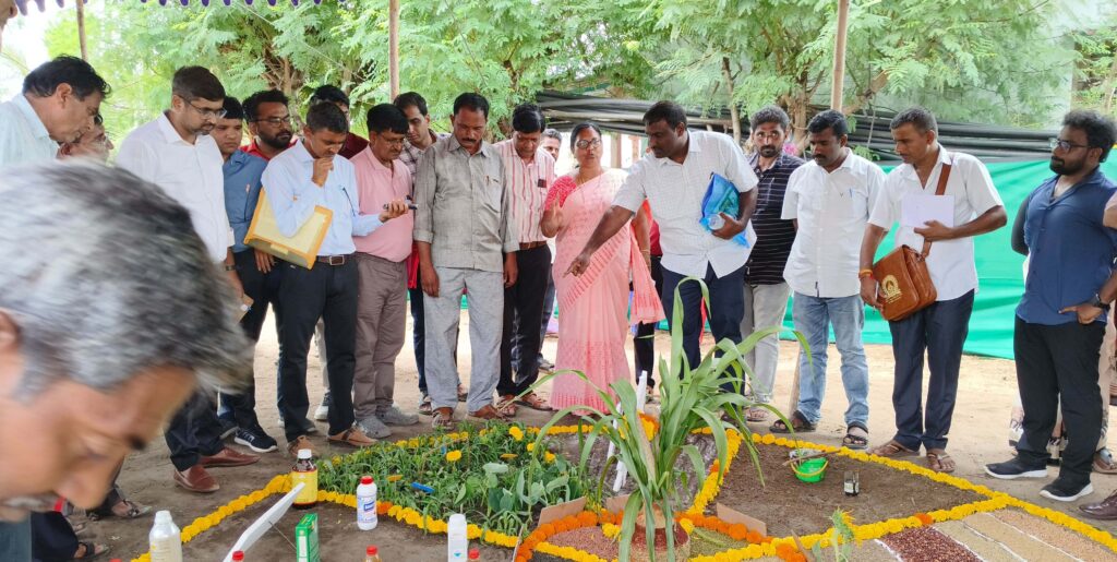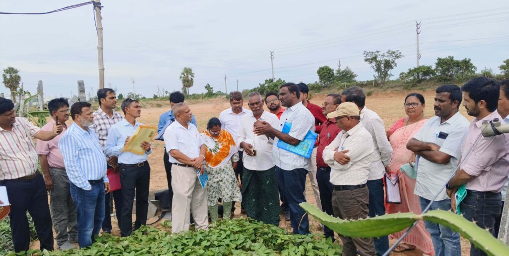 ప్రకాశం జిల్లాలో జరుగుతున్న ప్రకృతి వ్యవసాయంపై గుజరాత్ రాష్ట్రానికి చెందిన 20 మంది బృందం ప్రత్యేక అధ్యయనం, పరిశీలన చేయటానికి సోమవారం జిల్లాకు వచ్చారు. ప్రకృతి వ్యవసాయ విభాగం ప్రాజెక్టు మెనేజర్ సుభాషిణి ఆధ్వర్యంలో వ్యవసాయాధికారులు ప్రకృతి వ్యవసాయ సిబ్బంది వారికి ఆహ్వానించారు. డీపీఎం సుభాషిణి కార్యాలయంలో జిల్లాలో ప్రకృతి వ్యవసాయం లక్ష్యాలు, ప్రగతి కార్యక్రమాలు గురించి తెలిపారు. అనంతరం కొత్తపట్నం మండలం గమల్ల పాలెం గ్రామంలో బలగాని బ్రహ్మయ్య ప్రకృతి వ్యవసాయంలో సాగు చేసిన డ్రాగెన్ ఫ్రూట్స్ ను పరిశీలించారు. కొత్తపట్నంనలో మల్లేశ్వరమ్మ ప్రకృతి వ్యవసాయ వనరుల కేంద్రంలో సార్వత్రిక సూత్రాల చక్రములను సందర్శించారు. బీజా మృతం, ఘన జీవామృతం, ద్రవ జీవామృతం, విత్తన గుళికలు, అగ్నిస్త్రం, చేప, బెల్లం ద్రావణం డెమో చెప్పారు. జిల్లా వ్యవసాయాధికారి ఎస్ శ్రీనివాసరావు, ప్రకృతి వ్యవసాయ హార్టికల్చర్ డిప్యూటీ డైరెక్టర్ శ్రీనివాసరావు, ఎవో మోహన్ రెడ్డి, జిల్లా మండల ప్రకృతి వ్యవసాయ సిబ్బంది పాల్గొన్నారు.