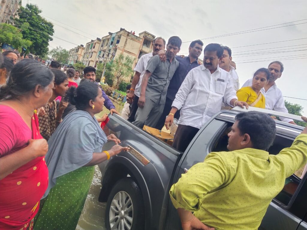 ఈ క్రమంలో మంత్రి డోలా బాల వీరాంజనేయస్వామి మాట్లాడుతూ.. కాలనీలోని బాధితులందరికి బియ్యంతో పాటు నిత్యావసర సరుకులు అందిస్తామని తెలిపారు. నీటి ప్రవాహం అదుపులోకి వచ్చిన తరువాత కాలనీ మొత్తం శానిటేషన్ చేయిస్తామని హామి ఇచ్చారు. పాడైపోయిన ఎలక్ట్రానిక్ వస్తువులు, బైక్ లకు ఆయా కంపెనీలతో మాట్లాడి రిపేరు చేయిస్తామని హామీ ఇచ్చారు.
