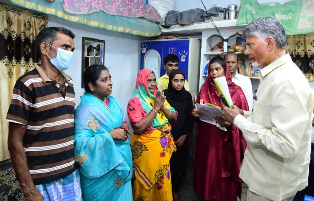 అదే విధంగా అల్లుదాసు శ్రీను, రేణుక దంపతుల ఇంటికి కూడా ముఖ్యమంత్రి వెళ్లారు. తమకు స్వంత ఇల్లు లేదని, స్వంత స్థలం కూడా లేదని వారు ముఖ్యమంత్రికి చెప్పారు. ప్రభుత్వమే తమను ఆదుకోవాలని అభ్యర్థించారు. తమ బిడ్డలు ఉన్నత చదువులు చదివేలా సహాయం చేయాలని వారు చంద్రబాబును కోరారు. దీనిపై ముఖ్యమంత్రి స్పందిస్తూ ఇలాంటి పరిస్థితిని ఎదుర్కొంటున్న వారికి ఇళ్లు నిర్మించడానికి అవసరమైన 200 ప్లాట్లు ఉండేలా స్థలం సేకరించాలని అధికారులను ఆదేశించారు