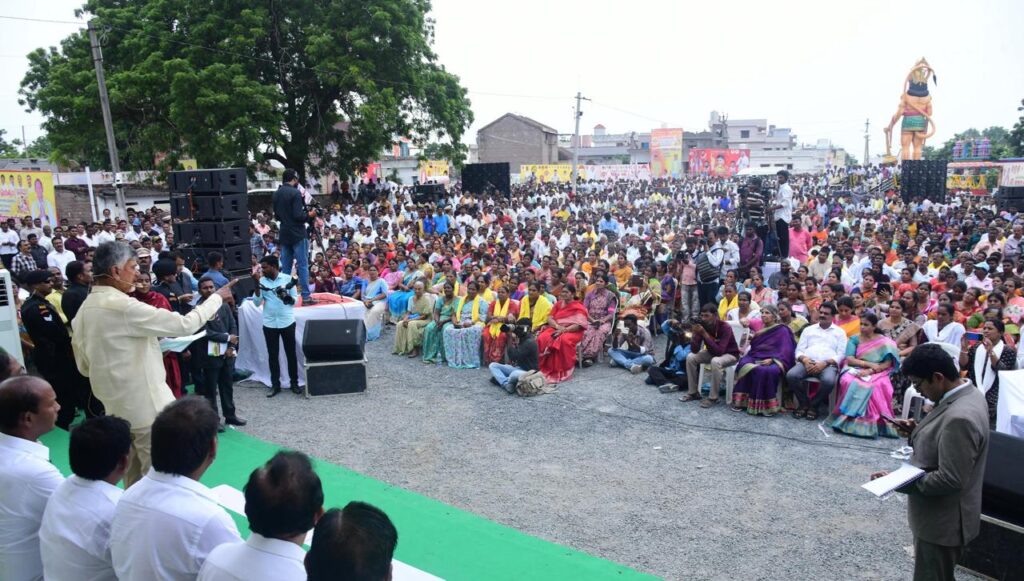 ‘‘నేను చాలా మంది సీఎంలను చూశాను కానీ…గత ప్రభుత్వంలో ఉన్నటువంటి సీఎంను ఎప్పుడూ చూడలేదు. ఎప్పుడైనా ప్రజల మధ్యకు వచ్చారా.? మీ సమస్యలు అడిగి తెలుసుకున్నారా?పరిష్కరించారా? ఎక్కడికన్నా వెళ్తే ఆ పరిసరాల్లో చెట్లు నరికించేవారు…ప్రజలు ఎవరూ చూడకుండా పరదాలు కట్టించేవారు. ఇష్టమున్నా, లేకున్నా ప్రజలు ఆయన సభలకు రావాలి. లేదంటే ఇంటికి వచ్చే నీళ్లో, రేషన్ కట్ చేస్తారు. ఆ అరాచకాలన్నీ భరించలేక ప్రజలు వారి ప్రభుత్వాన్ని భూస్థాపితం చేశారు. పాలనలో మార్పులు తీసుకొచ్చి, ప్రజలకు మరింత సేవ అందించాలని నేను, నా మిత్రుడు పవన్ కళ్యాణ్, నరేంద్రమోదీ నిర్ణయించుకున్నాం. ఈ గ్రామంలోనే ప్రజల ఇళ్ల వద్దకు వెళ్లి కలిసి సమస్యలు తెలుసుకున్నాను. మీ సమస్యలు నేరుగా తెలుసుకుని పరిష్కరించడానికే మీ వద్దకు వస్తున్నా. పఠాన్ ఖాజావలి అనే వ్యక్తి ఇంటికి వెళ్లా…ఆయనకు తల్లి, భార్య, కొడుకు, కూతురు ఉన్నారు. అతని తల్లికి రూ.4 వేలు పెన్సన్ వస్తోంది. కానీ ఆర్థిక ఇబ్బందులతో వారి ఇద్దరి బిడ్డలను చదివించలేకపోయారు… వారిని ప్రభుత్వమే చదివిస్తుంది. ఖాజావలి కుటుంబానికి 2019కి ముందు టీడీపీ ప్రభుత్వంలో ఇల్లు మంజూరైంది…2 బిల్లులు కూడా మంజూరు చేశాం. కానీ వైసీపీ ప్రభుత్వం వచ్చాక రూ.65,150 బిల్లు ఇవ్వకుండా ఇబ్బంది పెట్టారు…ఆ డబ్బులను మీ అందరి సమక్షంలో వారి కుటుంబానికి ఇస్తున్నాం. దేశంలోనే మొదటిసారిగా ఎన్టీఆర్ పింఛన్ల విధానాన్ని రూ.35 లతో ప్రారంభించారు. తర్వాత దాన్ని నేను రూ.70 లకు పెంచాను. 2014లో అధికారంలోకి రాగానే మళ్లీ రూ.2 వేలకు పెంచాను. ఇప్పుడు రూ.4 వేలకు పెంచాను. యేడాదికి సుమారు రూ.35 వేల కోట్లు పింఛన్లకు ఖర్చు అవుతోంది. ఎన్నికల ముందు ఇచ్చిన మాట ప్రకారం ఏప్రిల్, మే, జూన్ నెలల పింఛన్లు కూడా కలిపి జూలైలో రూ.7 వేలు అందించాం. 1వ తేదీన సెలవు రోజు వస్తే ఉద్యోగులు, లబ్ధిదారులు ఇబ్బంది పడకుండా ఒకరోజు ముందే పింఛన్లు ఇచ్చాం. పేదల సేవలో భాగంగా ప్రతి పేదవాడి ఇంటికి వెళ్లి కష్టాలు తెలుసుకునేలా పింఛన్ల కార్యక్రమం నిర్వహిస్తున్నాం. పెన్షన్లను గత ప్రభుత్వం అస్తవ్యస్థంగా తయారు చేశారు. దొంగ సదరం సర్టిఫికేట్లు తెచ్చుకుని వికలాంగుల కోటాలో పింఛన్లు తీసుకున్నారు. అర్హులందరికీ పింఛను అందించే బాధ్యత ప్రభుత్వం తీసుకుంటుంది. కానీ తప్పుడు సర్టిఫికేట్లతో లబ్ధిపొందాలని చూస్తే చర్యలుంటాయి…డాక్టర్లు ఇష్టానుసారంగా వ్యవహరిస్తే ఉద్యోగాలకు ఎసరు వస్తుంది. ఈ ప్రభుత్వం పేదల కోసమే ఉంది. గత ఐదేళ్లు ఊరికో సైకో తయారయ్యాడు. ఎదురుదాడి చేస్తే భయపడటం కాదు…తాటతీస్తా.