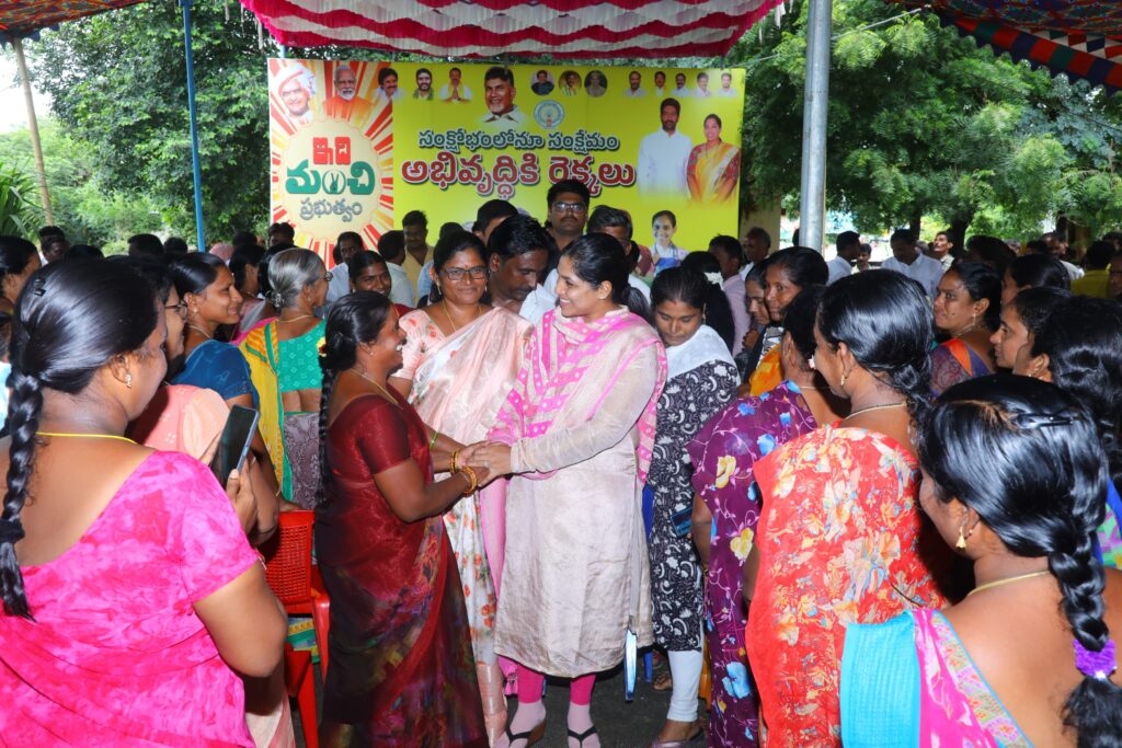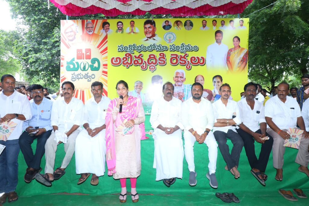 సంక్షేమం, అభివృద్ధే లక్ష్యంగా కూటమి ప్రభుత్వం పాలన సాగిస్తుందని దర్శి టిడిపి ఇన్చార్జి డాక్టర్ గొట్టిపాటి లక్ష్మి పేర్కొన్నారు. తాళ్లూరు మండల కేంద్రం లో బుధవారం ‘ ఇది మంచి ప్రభుత్వం’ కార్యక్రమాన్ని నిర్వహించారు. ఎంపీపీ తాటికొండ శ్రీనివాసరావు అధ్యక్షతన సభను నిర్వహించారు. ముఖ్య అతిథిగా పాల్గొన్న డాక్టర్ గొట్టిపాటి లక్ష్మి మాట్లాడుతూ… సీఎం చంద్రబాబు నాయుడు, ఉప ముఖ్యమంత్రి పవన్ కళ్యాణ్, మానవ వనరులు శాఖ మంత్రి నారా లోకేష్ ఆధ్వర్యంలో రాష్ట్రం సంక్షోభం నుండి అభివృద్ధి వైపు అడుగులు పడుతున్నట్లు చెప్పారు. అభివృద్ధి, సంక్షేమమే లక్ష్యంగా పాలన సాగిస్తూ నేడు వంద రోజులలో చేసిన అభివృద్ధిని ప్రజలకు వివరించేందుకు ఇది మంచి ప్రభుత్వం కార్యక్రమం చేపట్టినట్లు తెలిపారు. అమరావతి పునర్మిణానికి, పోలవం ప్రాజెక్టు జీవం పోయడానికి కేంద్ర ప్రభుత్వసహకారంతో మన ప్రభుత్వం ముందుకు పోతున్నదని అన్నారు. తాళ్లూరు మండల కేంద్రానికి వెల్లంపల్లి నుండి తాళ్లూరు వరకు రోడ్ ను నాడు తాతగారైన మంత్రి గొట్టిపాటి హనుమంతరావు రూ.40 లక్షలు మంజూరు చేయించి బాగు చేసారని గుర్తు చేసారు. నేడు తాళ్లూరు మండలంలో అవసరమైన చీమకుర్తి అడ్డరోడ్ నుండి కుంకుపాడు వరకు, తాళ్లూరు, గంగవరం, ముండ్లమూరు రోడ్లో మిగిలిన రెండు కిలో మీటర్లు డబుల్ రోడ్ నిర్మాణానికి తగిన కృషి చేస్తానని హామీ ఇచ్చారు. గొట్టిపాటి కుటుంబం నిత్యం ప్రజల కోసం పరితపించే కుటుంబమే అన్న విషయాన్ని వివరించారు. వరదల సమయంలో సీఎం చంద్రబాబు నాయుడు ఎంతో నేర్పుగా, ఓర్పుగా వ్యవహరించిన తీరు ప్రతి ఒక్క యువనాయకులకు, మాకు ఆదర్శమని కొనియాడారు. ఇటీవల జాబ్ మేళాలు నిర్వహించి నియోజక వర్గంలో 587 మందికి ఉద్యోగాలు కల్పించామని, ఆరోగ్య శిబిరాలు, కంటి వైద్య శిబిరాలు క్రమ పద్ధతిలో