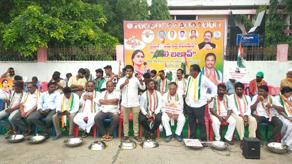 అలవికాని హామీలతో అధికారంలోనికి వచ్చిన ఎన్డీఏ ప్రభుత్వం సూపర్ సిక్స్ హామీలను అమలు చెయ్యాల్సిందే నని కాంగ్రెస్ పార్టీ నాయకులు పేర్కొన్నారు. ఒంగోలు కలెక్టరేట్ వద్ద కాంగ్రెస్ పార్టీ అధ్వర్యంలో బుధవారం ‘థాలీ బజావో ‘ కార్యక్రమాన్ని నిర్వహించారు. కాంగ్రెస్ పార్టీ జిల్లా అధ్యక్షుడు షేక్ సైదా, జిల్లా పార్టీ ప్రధాన కార్యదర్శి కైపు వెంకట క్రిష్ణా రెడ్డితో పాటు పలువురు వక్తలు మాట్లాడారు. సూపర్ సిక్స్ ను ఎన్డీఏ ప్రభుత్వం అమలు చేసి పేదలకు న్యాయం చెయ్యాలని డిమాండ్ చేసారు. బడుగు, బలహీన వర్గాలకు న్యాయం జరగాలంటే దివంగత సీఎం వైఎస్ రాజశేఖర్ రెడ్డి తనయ వైఎస్ షర్మిల సీఎంను చేసుకోవటం ఒక్కటే మార్గమని వక్తలు నొక్కి వక్కానించారు. ముందుగా మాగుంట పార్వతమ్మ మృతికి సంతాపం తెలుపుతూ మౌనం పాటించారు.