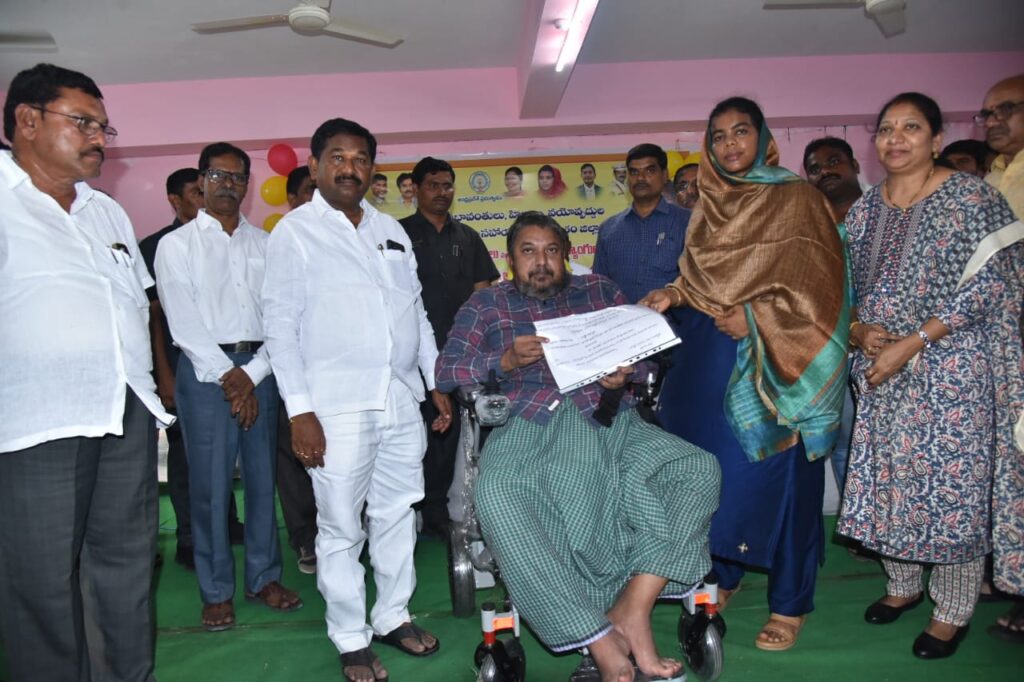 ఈ నెల 20వ తేదీన రాష్ట్ర ముఖ్యమంత్రి గారు జిల్లాలోని నాగులుప్పలపాడు మండలం, మద్దిరాల పాడు గ్రామంలో పర్యటించి నప్పుడు కల్లు గీత కార్మికుడు ఆల్లుదాసు శ్రీను పక్కా ఇల్లు లేక ఇబ్బందులు పడుతున్నానని ముఖ్యమంత్రి గారికి చెప్పుకుంటే కేవలం 5 రోజుల్లోనే ఇంటి నివేశన స్థల పట్టాను ఇచ్చిన ఘనత ముఖ్యమంత్రి గారికి దక్కుతుందన్నారు. అలాగే నాగులుప్పలపాడు గ్రామానికి చెందిన విభిన్న ప్రతిభావంతులు సురేష్ నాకు వీల్ చైర్ కావాలని ముఖ్యమంత్రి గారిని కోరితే, కేవలం 5 రోజుల్లోనే 95 వేల రూపాయల విలువ గల ఎలక్ట్రికల్ మూడు చక్రాల వాహనాన్ని ఈ రోజు అందచేయడం రాష్ట్రం ప్రభుత్వానికి విభిన్న ప్రతిభావంతుల సంక్షేమం పట్ల వున్న శ్రద్ద, నిబద్దతకు నిదర్శనమన్నారు.