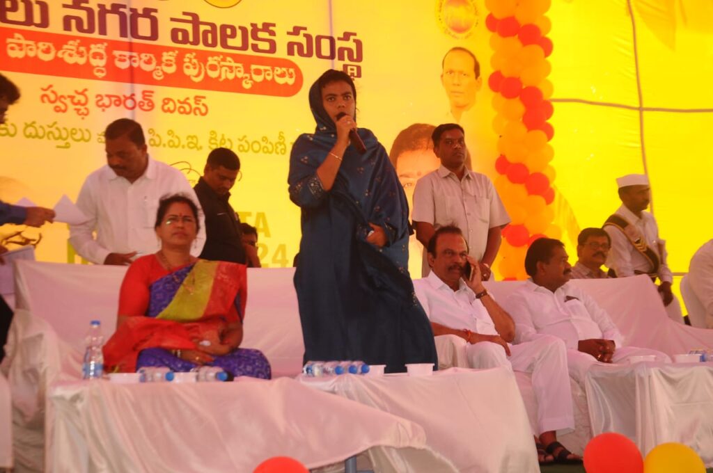 ఈ సందర్భంగా మంత్రి మాట్లాడుతూ …మహాత్మ గాంధీజీ స్ఫూర్తితో స్వచ్ఛమైన గ్రామాలు, పరిసరాలు ఆవిష్కృతమయ్యేలా ప్రభుత్వం చర్యలు తీసుకుంటున్నట్లు చెప్పారు. ఇందులో భాగంగా పారిశుధ్య కార్మికులు అందిస్తున్న సేవలు అమూల్యమైనవని కొనియాడారు. వరదల సమయంలో విజయవాడ వెళ్లి పారిశుద్ధ్య కార్మికులు అందించిన సేవలు చిరస్మరణీయమని ప్రశంసించారు. పరిసరాలను శుభ్రంగా ఉంచుకోవలసిన బాధ్యత సమాజంలోని ప్రతి ఒక్కరి పైనా ఉందని ఆయన అన్నారు.