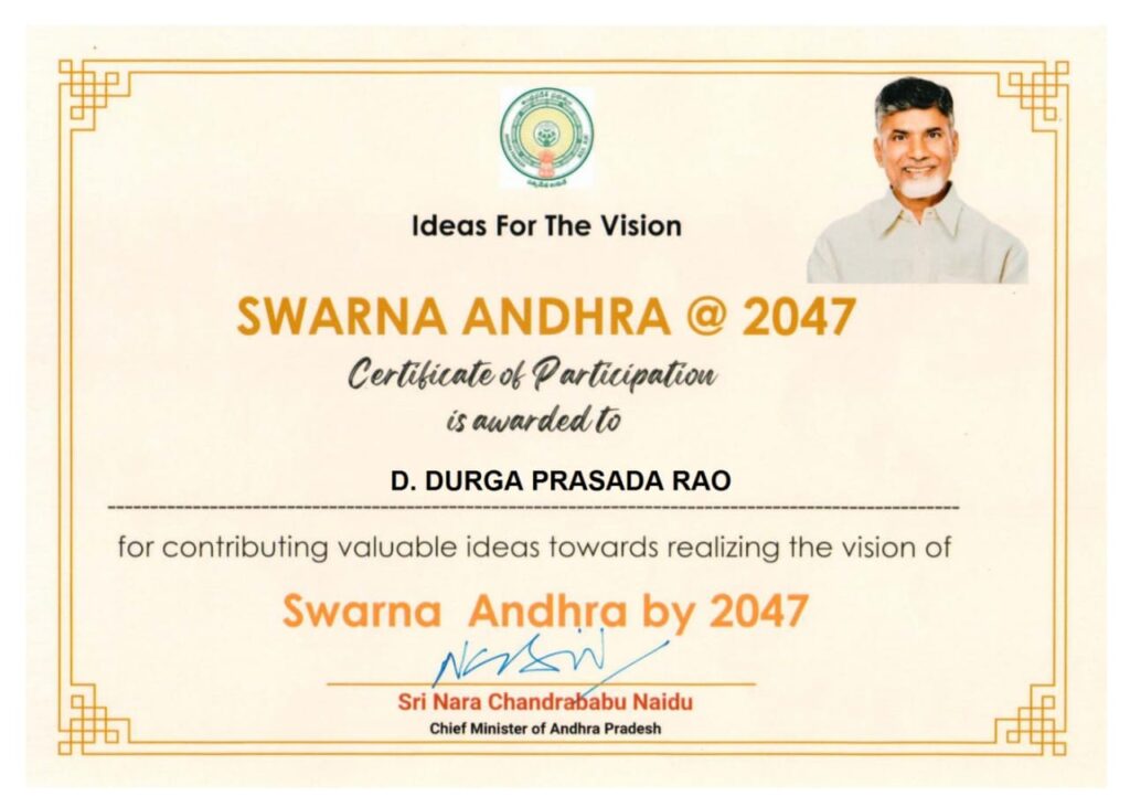 రాష్ట్ర అభివృద్ధికి అవసరమైన సూచనలు, సలహాలు ఇవ్వడంలో ప్రజలందరూ భాగస్వాములు కావాలని జిల్లా కలెక్టర్ ఏ.తమీమ్ అన్సారియా పిలుపునిచ్చారు. ఈ దిశగా స్వర్ణాంధ్ర -2047 పేరుతో రాష్ట్ర ప్రభుత్వం చేపడుతున్న సర్వేలో పాల్గొనాలని ఆమె సూచించారు. విధానాల రూపకల్పనలో ఏయే రంగాలకు ప్రాధాన్యం ఇవ్వాలో ప్రజల అభిప్రాయాలను తెలుసుకునేందుకు ప్రభుత్వం ఈ సర్వే నిర్వహిస్తున్నట్లు కలెక్టర్ వివరించారు. https://swarnandhra.ap.gov.in/Suggestions అనే వెబ్ సైట్ ను ఓపెన్ చేస్తే ఒక అప్లికేషన్ వస్తుందని, దీనిలో పేరు, వయస్సు, జిల్లా తదితర వివరాలను పూర్తి చేసిన తర్వాత వచ్చే 11 ప్రశ్నలకు సమాధానం ఇవ్వాల్సి ఉంటుందన్నారు. ఈ విధంగా సర్వేలో పాల్గొన్న వారు ముఖ్యమంత్రి నారా చంద్రబాబు నాయుడు సంతకంతో కూడిన ఒక ప్రశంసా పత్రాన్ని కూడా డౌన్లోడ్ చేసుకోవచ్చు అని చెప్పారు.
