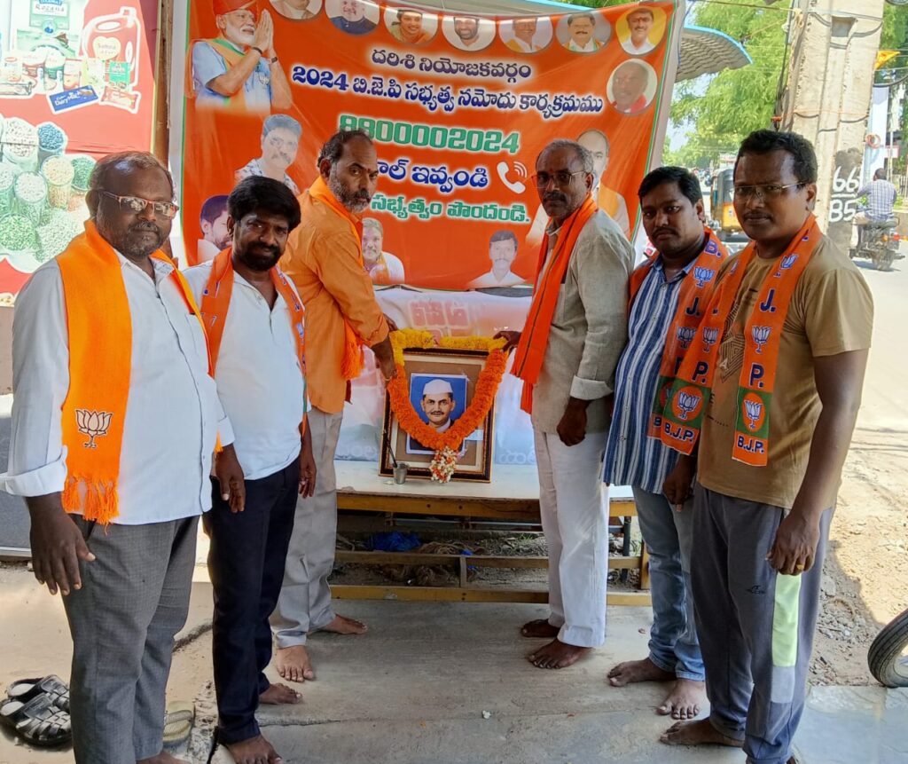 భారతీయ జనతా పార్టీ ఆధ్వర్యంలో మహాత్మా గాంధీకి లాల్ బహుదూర్ శాస్త్రికి ఘన నివాళులు అర్పించారు.దర్శి పట్టణంలో నగర పంచాయతీ వద్దగల మహాత్మ గాంధీజీ విగ్రహానికి పూలమాలవేసి నివాళులు అర్పించారు. భారత మాజీ ప్రధానమంత్రి లాల్ బహుదూర్ శాస్త్రికి దరిశి భారతీయ జనతా పార్టీ అసెంబ్లీ కన్వీనర్ మాడపాకుల శ్రీనివాసులు పూలమాలవేసి నివాళులర్పించారు. ఆయా కార్యక్రమా లలో జిల్లా ఉపాధ్యక్షులు తిండి నారాయణరెడ్డి ఆర్టికల్ సెల్ జిల్లా కన్వీనర్ నాగభూషణాచారి, జిల్లా కార్యవర్గ సభ్యులు ఏవి నారాయణరెడ్డి, జిల్లా ఎస్సీ మోర్చా ప్రధాన కార్యదర్శి ఆంజనేయులు , దర్శి రూరల్ మండలాధ్యక్షుడు కాకర్ల నాగసాయి, యువ నాయకులు అనిల్ బచ్చు, అనిల్ కొండలు, అచ్యుత ప్రసన్నకుమార్ తదితరులు కార్యక్రమంలో పాల్గొన్నారు