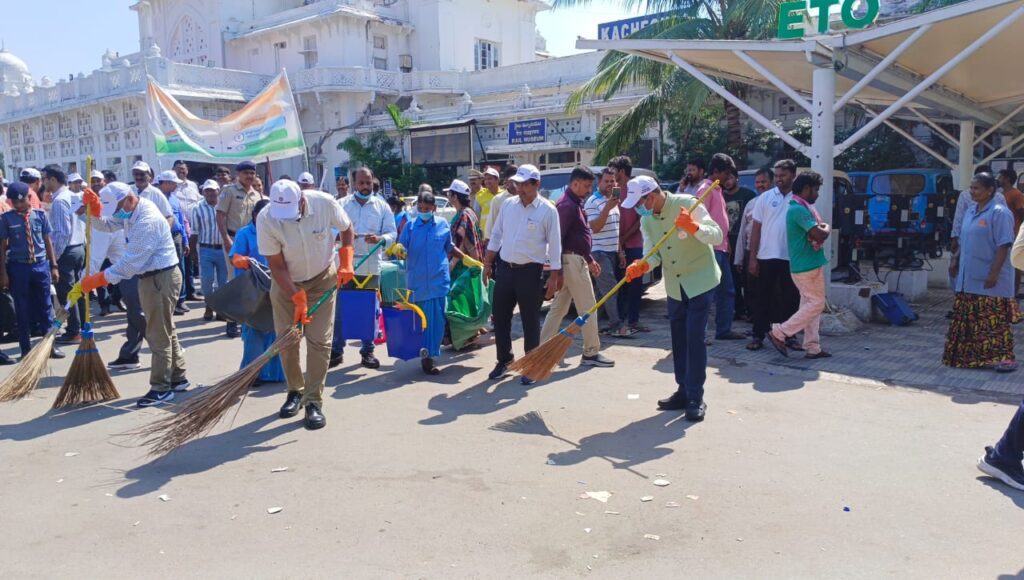 కాచిగూడ రైల్వే స్టేషన్లో జరిగిన శ్రమదాన కార్యక్రమంలో జనరల్ మేనేజర్ అరుణ్ కుమార్ జైన్ తో పాటు అధికారులు మరియు సిబ్బంది పాల్గొన్నారు. జనరల్ మేనేజర్ అధికారులతో కలిసి కాచిగూడ రైల్వేస్టేషన్లోని స్టేషన్ ప్రాంగణాన్ని శుభ్రం చేశారు. ఈ సంధర్భంగా స్టేషన్లో జనరల్ మేనేజర్ 35 మంది సఫాయి కార్మికులను సత్కరించారు. ఈ సందర్భాన్ని పురస్కరించుకొని జోన్లో నిర్వహించిన వ్యాసరచన & డ్రాయింగ్ పోటీలలో విజేతలకు బహుమతులను అందజేశారు. స్టేషన్లో రైల్వే ఉద్యోగులు పరిశుభ్రత అంశంపై వీధి నాటకాన్ని ప్రదర్శించి ప్రజలకు అవగాహన కల్పించారు. స్వచ్ఛత అనే అంశంపై సంప్రదాయ నృత్యo ప్రదర్శించారు.