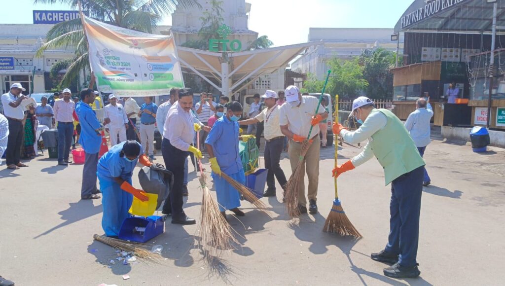 స్వచ్ఛత పఖ్వాడా’ప్రచారాన్ని అక్టోబర్ 01 నుండి 15 వరకు ‘స్వభావ స్వచ్ఛత – సంస్కార్ స్వచ్ఛత’ అనే నేపథ్యంపై పాటిస్తున్నారు. జాతిపిత మహాత్మా గాంధీ జయంతిని పురస్కరించుకుని బుధవారం స్వచ్ఛ భారత్ దివస్ను జరుపుకున్నారు. ఈ సందర్భంగా దక్షిణ మధ్య రైల్వే జనరల్ మేనేజర్ అరుణ్ కుమార్ జైన్ కాచిగూడ రైల్వే స్టేషన్లో అధికారులు, సిబ్బందితో స్వచ్ఛతా ప్రతిజ్ఞ చేయించారు. ఈ కార్యక్రమంలో దక్షిణ మధ్య రైల్వే అదనపు జనరల్ మేనేజర్ నీరజ్ అగర్వాల్; ప్రిన్సిపల్ చీఫ్ మెకానికల్ ఇంజనీర్ మధుసూదన్ రావు; ప్రిన్సిపల్ చీఫ్ పర్సనల్ ఆఫీసర్ జి.ఆర్.ఎస్. రావు; ఆర్.ఎస్.పి. చీఫ్ అడ్మినిస్ట్రేటివ్ ఆఫీసర్ ప్రదీప్ కుమార్; హైదరాబాద్ డివిజన్ డివిజనల్ రైల్వే మేనేజర్ లోకేష్ విష్ణోయ్ మరియు ఇతర ఉన్నతాధికారులు పాల్గొన్నారు.