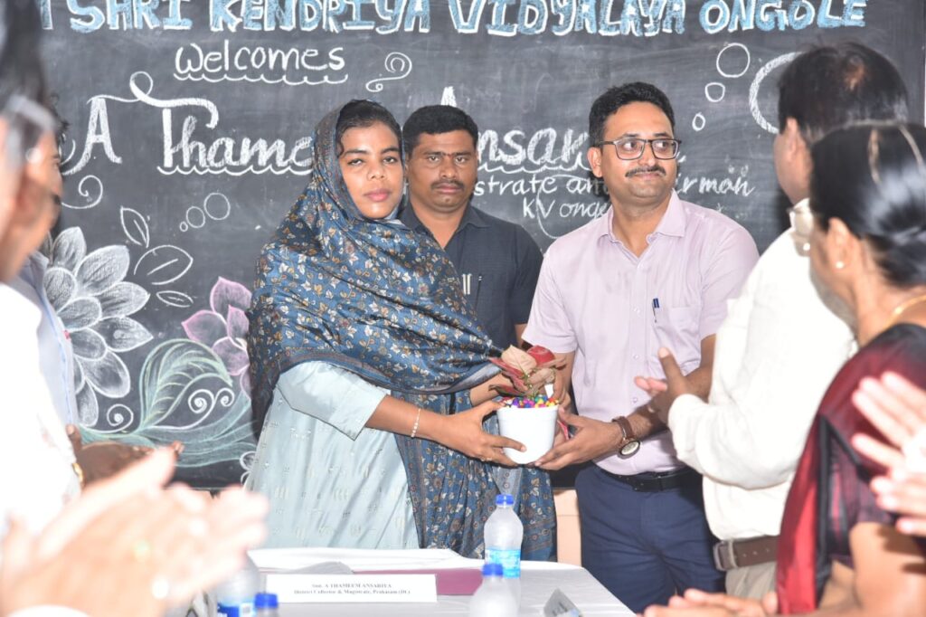 విద్యార్ధులకు పాఠ్యాంశాలభోదనతో పాటు జనరల్ నాలెడ్జి పెంపొందేలా భోధన వుండాలని జిల్లా కలెక్టర్ ఏ. తమీమ్ అన్సారియా అన్నారు.మంగళవారం ఒంగోలు కేంద్రీయ విద్యాలయంలో జరిగిన మేనేజ్మెంట్ కమిటీ సమావేశంలో జిల్లా కలెక్టర్ శ్రీమతి తమీమ్ అన్సారియ పాల్గొన్నారు. ఈ సందర్భంగా కేంద్రీయ విద్యాలయం పరిస్థితి, 2024-25 సెషన్ కోసం అడ్మిషన్ మార్గదర్శకాలు, తరగతుల వారీగా విద్యార్థుల నమోదు, సిబ్బంది మంజూరు మరియు ఖాళీ పోస్టులు వివరాలు, గత కమిటీ సమావేశం ఎజెండా వివరాలు, తీసుకున్న చర్యలు, ప్రస్తుత కమిటీ సమావేశం ఎజెండా వివరాలు తదితర అంశాలను కేంద్రీయ విద్యాలయం ప్రిన్సిపాల్ ఎం. మనీష్ కుమార్ పవర్ పాయింట్ ప్రెజెంటేషన్ ద్వారా జిల్లా కలెక్టర్ కు వివరించారు.ఈ సందర్భంగా జిల్లా కలెక్టర్ మాట్లాడుతూ …. కేంద్రీయ విద్యాలయంలో విద్యార్ధులకు పాత్యంశాల భోదనతో పాటు జనరల్ నాలెడ్జి పెంపొందేలా భోధన ఉండాలన్నారు. సమాజంలో ఉత్తమ పౌరులుగా జీవించేలా విద్యార్ధులను తీరిచిదిద్దాలసిన బాధ్యత మీ పై ఉందన్నారు. క్రమం తప్పకుండా విద్యార్ధులకు వైద్య పరీక్షలు నిర్వహించడంతో పాటు విద్యార్ధుల్లో గ్రూప్ యాక్టివిటీస్ ను పెంపొందించాలన్నారు. పిల్లల్లో వున్న సృజనాత్మకతను గుర్తించి అందుకనుగుణంగా భోధన వుండాలని జిల్లా కలెక్టర్ సూచించారు. పాఠశాల పక్కనే అందుబాటులో ఉన్న ప్లే గ్రౌండ్ కోసం భూమి కేటాయింపు విషయమై పరిశీలించడం జరుగుతుందని కలెక్టర్ తెలిపారు.