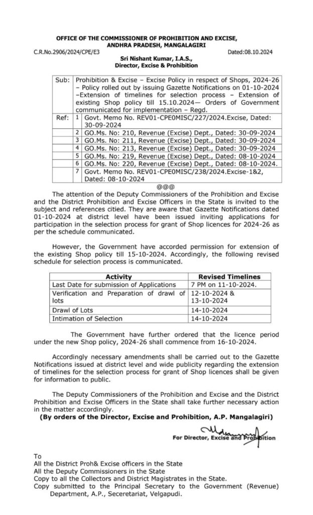 మద్యం షాపుల ప్రారంభానికి ఆన్లైన్లో లేదా ఆఫ్లైన్లో దరఖాస్తు చేసుకోవడానికి అక్టోబర్ 11 సాయంత్రం ఏడు గంటల వరకే అవకాశం ఉందని దర్శి ఎక్సైజ్ సీఐ కె. శ్రీనివాసరావు తెలిపారు . బుధవారం న్యూస్ పేపర్ లో వచ్చిన వార్త కథనం ప్రకారం గవర్నమెంట్ మద్యం షాపు ల లో మద్యం అమ్మేందుకు గడువు ఈ నెల 15వ తారీకు వరకు మాత్రమే ఉందని ఆ కథనం సారాంశమని చెప్పారు. మద్యం దుకాణాలు లాటరీలలో వచ్చిన వ్యక్తులు అక్టోబర్ 16వ తారీకు నుండి మద్యం షాపులు తెరుచుకొని అమ్ముకోవడానికి హక్కు అని ఆ వార్త కథనంలోని సారాంశాన్ని వివరించారు. దరఖాస్తు చేసుకోవడానికి మాత్రం …ఈ నెల 11 ఆఖరి గడవని ఆశవాహులు సకాలంలో దరఖాస్తు చేసుకోవాలని ఒక ప్రకటనలో కోరారు.