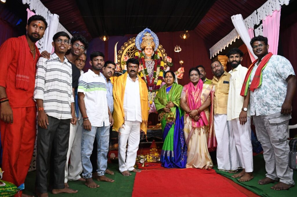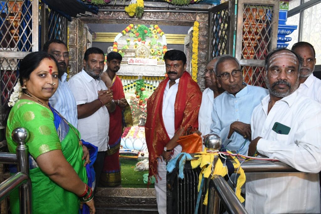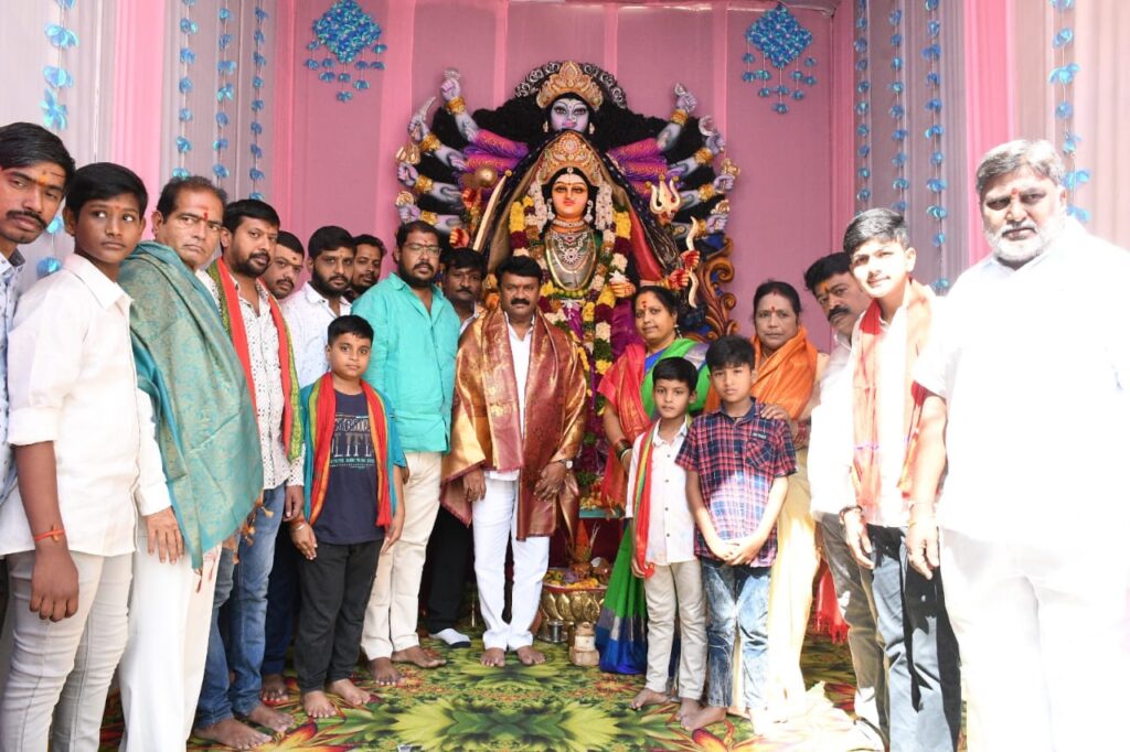 దేవీ శరన్నవరాత్రి ఉత్సవాలలో భాగంగా బుధవారం మాజీమంత్రి, సనత్ నగర్ MLA తలసాని శ్రీనివాస్ యాదవ్ వివిధ మండపాలలో అమ్మవార్లను దర్శించుకొని పూజలు నిర్వహించారు. రాంగోపాల్ పేట డివిజన్ లోని రంగ్రేజ్ బజార్, కుమ్మరి బస్తీలలో ఏర్పాటు చేసిన మండపాలలో వివిధ రకాల అలంకరణలలో ఉన్న అమ్మవారిని దర్శించుకున్నారు. అదేవిధంగా ఆవుల మంద లోని శ్రీ వాసవి కన్యకాపారమేశ్వరి ఆలయంలో లక్ష్మీదేవి అలంకారంలో ని అమ్మవారిని దర్శించుకుని పూజలు నిర్వహించారు. పూజల అనంతరం నిర్వహకులు MLA ను ఘనంగా సన్మానించి ప్రసాదాలు అందజేశారు. ఈ కార్యక్రమంలో మాజీ కార్పొరేటర్ లు అత్తిలి మల్లిఖార్జున్ గౌడ్, అత్తిలి అరుణ గౌడ్, కిరణ్మయి, BRS డివిజన్ అధ్యక్షుడు అత్తిలి శ్రీనివాస్ గౌడ్, కన్యకాపరమేశ్వరి ఆలయ కమిటీ సభ్యులు బాలేందర్, సూర్యప్రకాష్, దీపక్ గుప్తా, ఆనంద్, వెంకటేష్, నాయకులు కిషోర్, ఆంజనేయులు, మధు, ప్రేమ్, మల్లిఖార్జున్, సుధీర్ తదితరులు పాల్గొన్నారు.