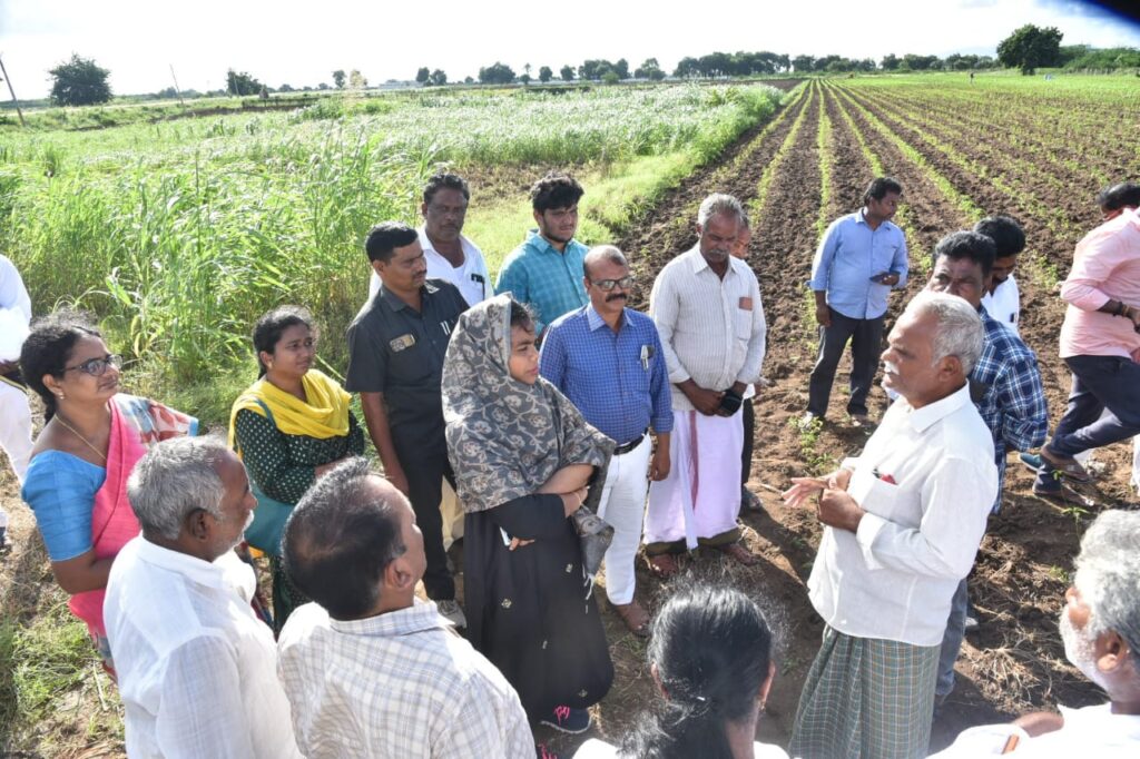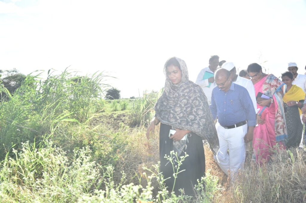 కలెక్టర్ వెంట వ్యవసాయ శాఖ ఏ.డి. రమేష్ బాబు, తహసీల్దార్ ఆదిలక్ష్మి, వ్యవసాయ అధికారి పావని, ఉద్యాన అధికారి ప్రత్యూష, ఇతర అధికారులు ఉన్నారు.
