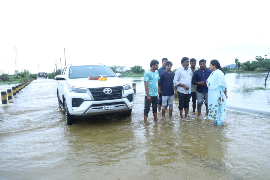 విఠలాపురం నుండి తాళ్లురు టౌన్ కి మధ్యలో లో దోర్నాపు వాగు ఉదృతం గా ప్రవహిస్తూ ఉడటం తో స్థానిక నాయకులతో కలిసి డాక్టర్ గొట్టిపాటి లక్ష్మీ పరిశీలించారు . త్వరలో సంబంధిత ఆర్ అండ్ బి పంచాయతీరాజ్ శాఖ లతో మాట్లాడి ప్రజలకు రాకపోకలకు ఇబ్బంది లేకుండా హై లెవెల్ బ్రిడ్జి నిర్మాణానికి అంచనాలను వెంటనే తయారు చేయించి నిర్మాణ కృషి చేస్తానని హామీ ఇచ్చారు . అకాల వర్షాలు వరదల సమయాల్లో లో లెవెల్ బ్రిడ్జిల వల్ల అనేక ప్రమాదాలు చోటు చేసుకునే దీనిపై ప్రభుత్వం పెద్దలతో మాట్లాడి వెంటనే పనులు జరిగేందుకు కృషి చేస్తానని హామీ ఇచ్చారు. నాయకులు ఐ . శ్రీనివాస రెడ్డి తది తరులు పాల్గొన్నారు .