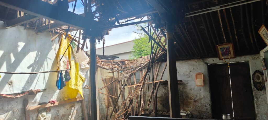 తాళ్లూరులో పడమటి బజారులో మారం నాగేశ్వరమ్మ కు చెందిన పెంకు టిళ్లు ఇటీవల రోజు కురుస్తున్న వర్షాలకు నాని పోయి కూలిపోయినది. ఇల్లు మధ్య బాగం నుండి ఒక వైపు పూర్తిగా కూలి పోవటంతో పాటు ఇల్లు కూడ పూర్తిగా దెబ్బతిన్నది. పేదలమైన తమ నివాసం కూలి పోవటంతో నివాసానికి పూర్తిగా ఇబ్బందికరమైనదని, తహసీల్దార్ స్పందించి ఆదుకోవాలని మారం నాగేశ్వరమ్మ కుటుంబసభ్యులు కోరుతున్నారు.