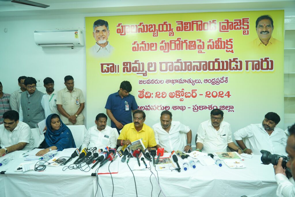 మంగళవారం రాష్ట్ర జల వనరుల శాఖ మంత్రి నిమ్మల రామానాయుడు, ప్రకాశం ఉమ్మడి జిల్లాకు చెందిన మంత్రులు గొట్టిపాటి రవికుమార్, డా. డోలా బాలవీరంజనేయస్వామి, ఒంగోలు పార్లమెంట్ సభ్యులు మాగుంట శ్రీనివాసులురెడ్డి, జిల్లా కలెక్టర్ తమీమ్ అన్సారియా, శాసన సభ్యులు, వివిధ కార్పొరేషన్స్ చైర్మన్ల తో కలసి పూల సుబ్బయ్య వెలిగొండ ప్రాజెక్టుకు సందర్శించిన అనంతరం