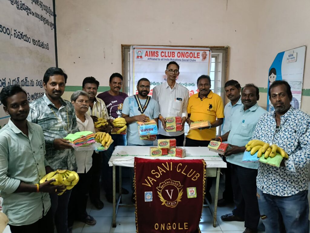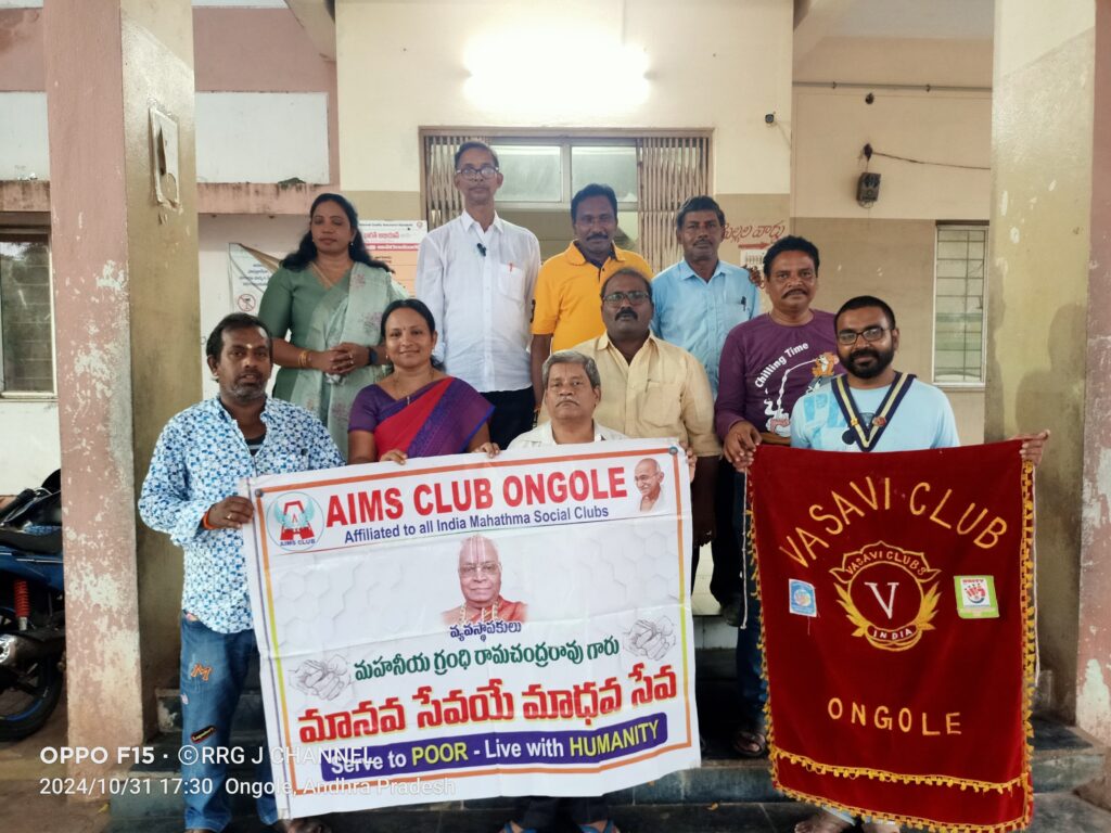 ఆల్ ఇండియా మహాత్మ సోషల్ క్లబ్స్ ఒంగోలు శాఖలు ఎయిమ్స్ క్లబ్ ఒంగోలు, ఎయిమ్స్ క్లబ్ వనిత ఒంగోలు, ఎయిమ్స్ క్లబ్ ఒంగోలు జూనియర్స్ మరియు వాసవిక్లబ్ ఒంగోలు సంయుక్త ఆధ్వర్యంలో దీపావళి పర్వదినాన్ని పురస్కరించుకొని మాతా శిశు వైద్యశాల లోని గర్భిణీ స్త్రీలకు, బాలింతలకు పండ్లు, రొట్టెలు, చిన్నారులకు జుబ్బాలను పంపిణీ చేశారు. ఈ కార్యక్రమానికి విచ్చేసిన ఆలిండియా మహాత్మా సోషల్ క్లబ్స్ పూర్వ జాతీయ అధ్యక్షులు రాధా రమణ గుప్తా జంధ్యం మాట్లాడుతూ గత నాలుగు సంవత్సరాలుగా మాత శిశువుల మధ్య దీపావళి పండుగను ఎయిమ్స్ క్లబ్స్ నిర్వహణలో ఘనంగా జరుపుకుంటున్నామని దీపావళి అంటేనే అంధకారాన్ని అంతం చేయడానికి దివ్య దీపాలు వెలిగించి అందరి జీవితాల్లో ఆరోగ్యము సంతోషముల వెలుగు పూలు వికసించాలని ఆ పరమేశ్వరి, జగన్మాతను పూజించడమేనని వివరించారు.