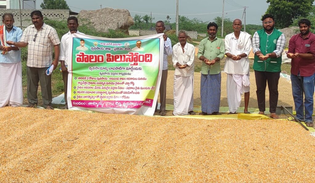 మొక్కజొన్న కోతలో, ఆరబోతలో తగిన జాగ్రత్తలు తీసుకోవాలని వ్యవసాయ అధికారి ప్రసాదరావు కోరారు. మాధవరం, శివరాంపురం గ్రామాలలో బుధవారం పొలం పిలుస్తుంది కార్యక్రమం నిర్వహించారు. మొక్కజొన్న ప్రస్తుతం మార్కెట్లో రూ. 2200 నుంచి రూ.2300 వరకు ఉన్నదని మంచి యాజమాన్య పద్ధతులు పాటిస్తే దిగుబడులు మరింతగా వస్తాయని చెప్పారు.