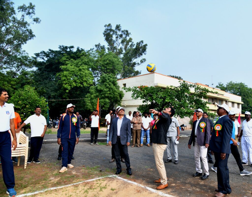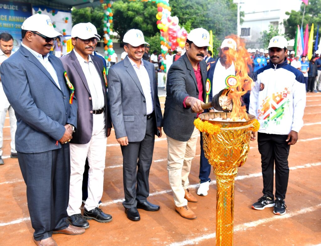 జిల్లా పోలీసు శాఖ ఆధ్వర్యంలో పోలీస్ సిబ్బంది పాల్గొనే జిల్లా పోలీసు గేమ్స్ అండ్ స్పోర్ట్స్ మీట్- 2024 ను జిల్లా పోలీస్ పెరేడ్ మైదానంలో జిల్లా ఎస్పీ ఏఆర్ దామోదర్ ప్రారంభించారు. పోటీల్లో పాల్గొనే క్రీడాకారులు మార్చ్ పాస్ట్ నిర్వహించారు. స్పోర్ట్స్ మీట్ ప్రారంభ సూచకంగా జిల్లా ఎస్పీ ఏఆర్ దామోదర్ బెలూన్లు ఎగరేశారు. గత స్పోర్ట్స్ మీట్ లోని వ్యక్తిగత ఛాంపియన్ కాటం శ్రీను (పిసి.973) క్రీడా కాగడాను జిల్లా ఎస్పీ ఏఆర్ దామోదర్ కి అందచేయగా జ్యోతిని వెలిగించి క్రీడలను ప్రారంభించారు. ఈ క్రమంలో ముందుగా పోలీసు క్రీడాకారులును ఎస్పీ పరిచయం చేసుకొని, వాలీబాల్ పోటీలను ప్రారంభించారు.
