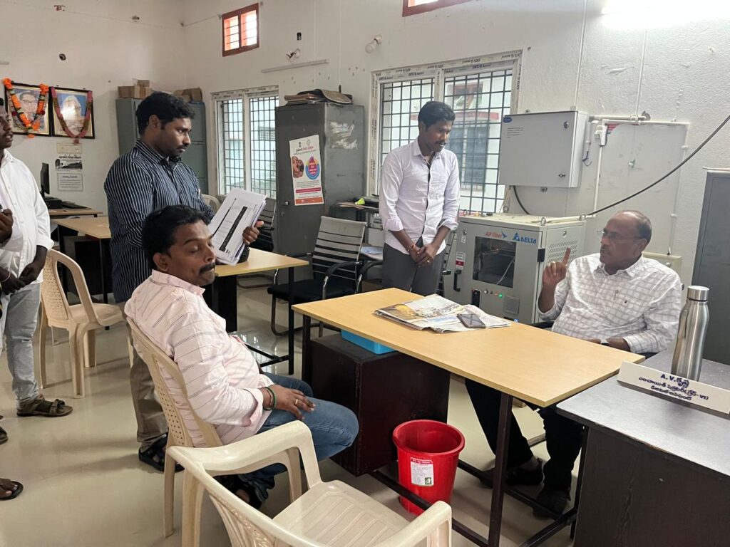 పంచాయితీ రికార్డుల డిజిటలైజేషన్ వేగవంతం చెయ్యాలని జిల్లా పంచాయితీ అధికారి గొట్టిపాటి వెంకట నాయుడు కోరారు. తాళ్లూరులో సచివాలయం -1, సచివాలయం -2లను ఆయన శనివారం అకస్మికంగా తనిఖీ నిర్వహించారు. ఇంటి పన్ను వసూలు పెంచి అసెస్ మెంటు నంబర్ల కేటాయింపు వేగవంతం చెయ్యాలని కోరారు. సచివాలయానికి సంబంధించిన పనులు త్వరితగతిన చేసే విధంగా సచివాలయ సిబ్బందిని ఉపయోగించుకోవాలని సూచించారు. ఖచ్చితమైన డేటాను అప్ లోట్ చేసే బాధ్యత పూర్తిగా గ్రామకార్యదర్శి దే అని స్పష్టం చేసారు. సచివాలయం -2లో మరుగుదొడ్లు అపరిశుభ్రంగా ఉండటం చూసి ఆగ్రహం వ్యక్తం చేసారు. సిబ్బంది వాటిని ఎలా ఉపయోగించుకుంటున్నారని పూర్తి స్థాయిలో స్వచ్ఛత పాటించాలని కోరారు. కార్యక్రమంలో ఎంపీడీఓ సుందర రామయ్య, గ్రామకార్యదర్శి -2 కళ్యాణ్, సిబ్బంది పాల్గొన్నారు.