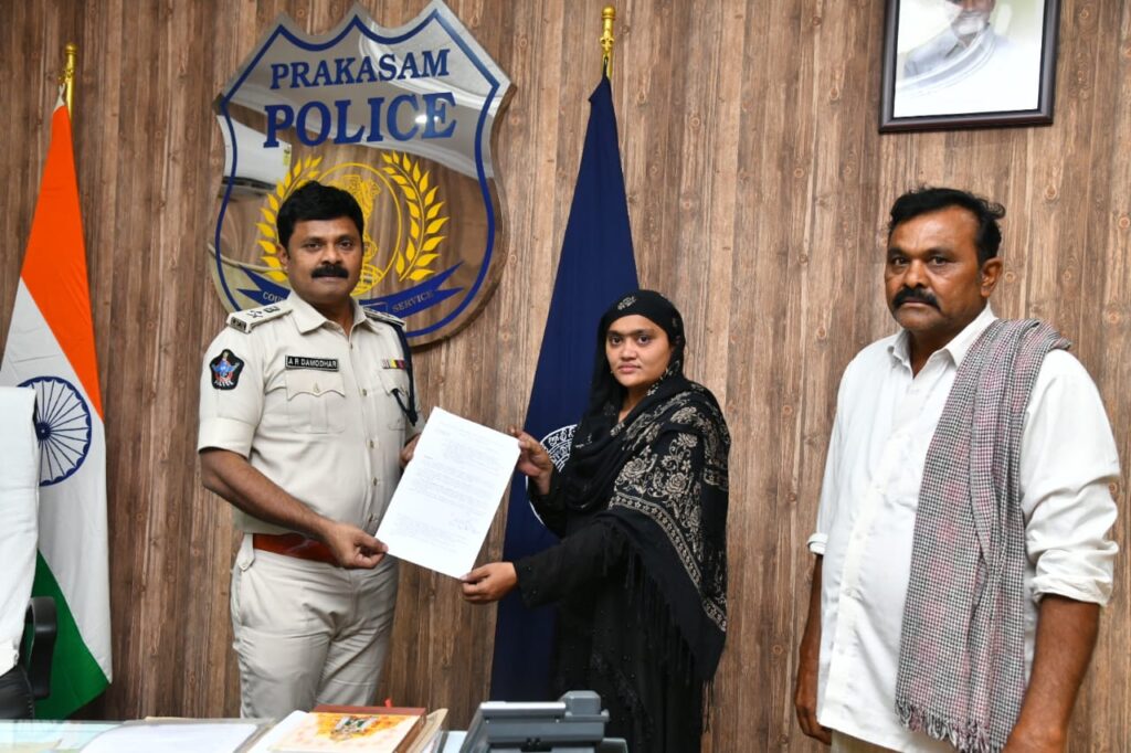 మార్కాపురం సబ్- డివిజన్ పరిధిలో విధులు నిర్వహిస్తూ తేది:10.05.2023న మరణించిన హోమ్ గార్డ్ పి. శ్రీను (HG- 803) గారి సతీమణి పి. కాశమ్మ కి కారుణ్య నియామకం క్రింద హోమ్ గార్డ్ ఉద్యోగం కల్పిస్తూ నియామకపత్రాన్ని బుధవారం జిల్లా పోలీస్ కార్యాలయంలో ఎస్పీ ఏఆర్ దామోదర్ అందచేసినారు.