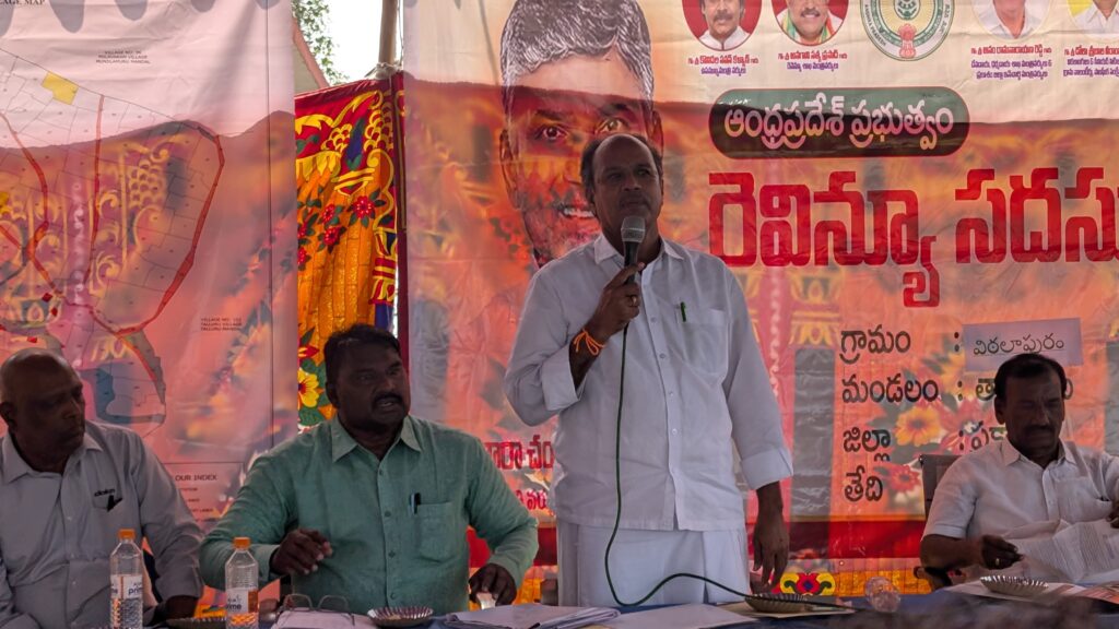 గ్రామాల్లో గ్రామసర్పంచ్ లు మారం ఇంద్రసేనారెడ్డి, కొర్రపాటి శ్రీదేవి అధ్యక్షతనశనివారం రెవెన్యూ సదస్సులు జరిగాయి. ఈ సదస్సుల నుద్ధేశించి ప్రభుత్వం ప్రజలచెంతకే రెవెన్యూ యంత్రాంగంను తీసుక వచ్చి సమస్యల సత్వర పరిష్కారానికి కృషి చేస్తున్నదన్నారు. తమతండ్రి కొనుగోలు చేసిన భూమిని దాదాపు 40ఏళ్లుగాసాగు చేసుకుంటుండగా బాకీ పేరుతో ఓవ్యక్తి అక్రమంగా ఆభూమి కొంత భాగాన్నికుటుంబీకులకు తెలియకుండా ఆన్లైన్ చేసుకొని రిజిష్టర్ చేయించుకుని ఇబ్బందులు పెడుతున్నారని విఠలాపురం ఎస్సీ కాలనీకి చెందిన పాలెపోగు నాగేశ్వర రావు,గురువయ్య కుటుంబీకులు అధికారులకు వినతి పత్రం అందజేశారు. గ్రామం లోని ఒకరి వద్ద డికె పట్టా కొనుగోలు చేసి 30 ఏళ్లుగా అనుభవంలో వుండి సాగు చేస్తున్నా సాగులో వున్న భూమిని ఆన్లైన్ చేయక ఇబ్బందులు పెడుతున్నారని, తమ భూమికి ఆన్లైన్ చేయాలని తాటికొండ శ్రీనివాసరావు అధికారులకు అర్జీ అందజేశారు. తాళ్లూరు నుండి కొర్రపాటివారిపాలెం వెళ్లే మార్గంలో తమ పూర్వీకులు నివాసముంటుండగా గ్రామ ఎస్సీ కాలనీ చెందిన వ్యక్తి తమ స్థలంలో కొంత విస్తీర్ణా న్ని ఆక్రమించున్నాడని, ఆక్రమణలు తొలగించాలని అనేక మార్లు అధికారులకున్ని ఆక్రమించున్నాడని, ఆక్రమణలు తొలగించాలని అనేక మార్లు అధికారులకు విన్నవించినా ఫలితం లేదని, తమ స్థలాన్ని ఆక్రమణ నుండి తొలగించాలని, పేద లమైన ఇళ్ల స్థల పట్టాలు మంజూరు చేయాలని తాళ్లూరు పాముల కాలనీ వాసులు అధికారులకు ధరఖాస్తు అందజేశారు. రెవెన్యూ సంబంధ సమస్యల కోసం విఠలాపురంలో 17, కొర్రపాటివారిపాలెంలో 17 దరఖాస్తులు అందజేశారు. ఈ సద స్సుల్లో తహసీల్దార్ కె.సంజీవరావు, డిప్యూలీతహసీల్దార్, మండల వ్యవసాయాధికారి బి.ప్రసాదావు సర్వేయర్-శ్రీనివాసరావు, ఆర్ఎ అనూష, విఆర్వో సుశీల రాణి, రమణారెడ్డి, పలు గ్రామాల విఆర్వోలు, రైతాంగం పాల్గొన్నారు.