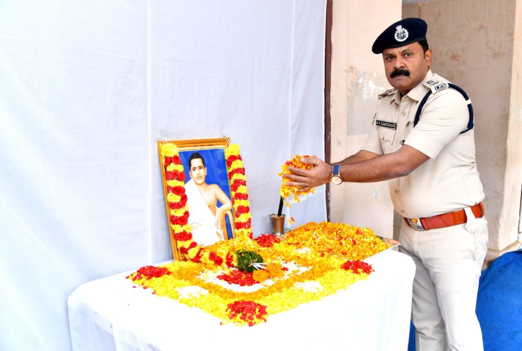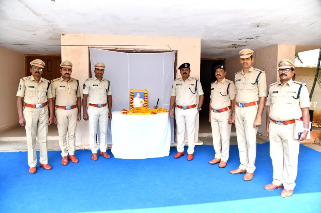 అమరజీవి శ్రీ పొట్టి శ్రీరాములు గారి 72 వ వర్ధంతి సందర్భంగా ఆదివారం జిల్లా పోలీసు కార్యాలయంలో జిల్లా ఎస్పీ ఏఆర్ దామోదర్ మరియు పోలీస్ సిబ్బంది శ్రీరాములు గారి చిత్రపటానికి ఫూలమాలలు వేసి ఘన నివాళులర్పించారు.