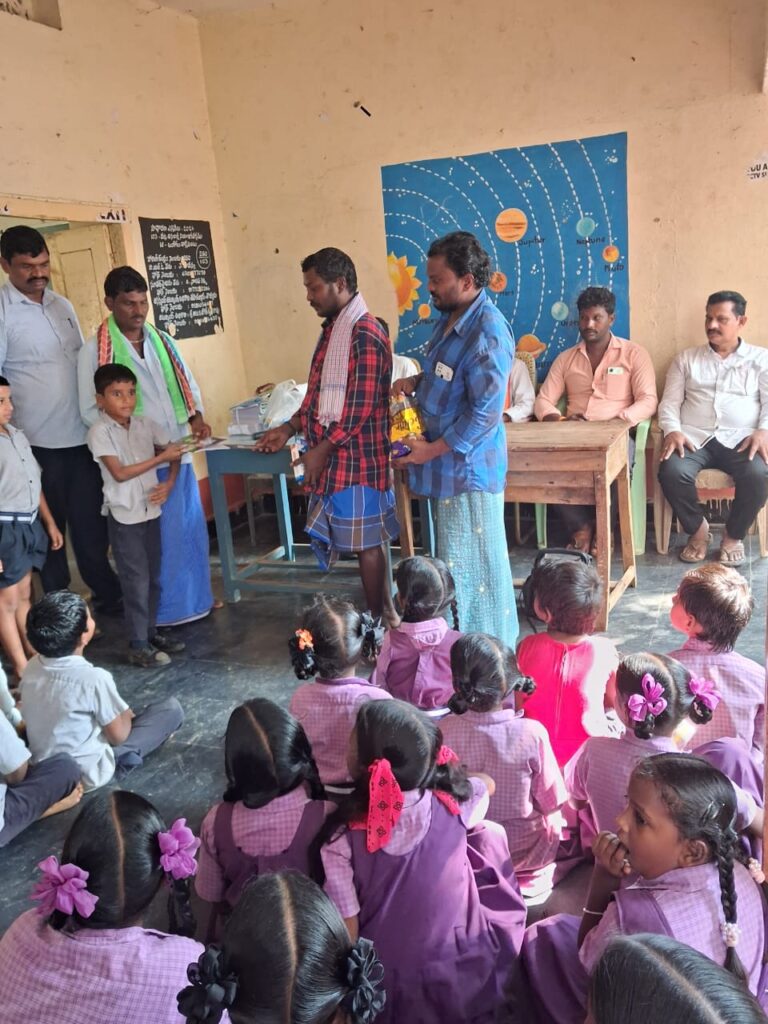విద్యార్థులకు అవసరమైన అభ్యసన సామాగ్రిని అందించడం అభినందనీయమని ప్రధానోపాధ్యాయుడు శ్రీనివాస్ అన్నారు.తాళ్లూరు మండలంలోని శివరాంపురం మండల పరిషత్ ప్రాథమిక పాఠశాల (జనరల్) నందు సోమవారం విద్యార్థులకు నోట్ బుక్స్ పంపిణీ చేయడం జరిగింది. పాఠశాల మేనేజ్మెంట్ కమిటీ మాజీ చైర్మన్ అనపర్తి పెద్ద నరసయ్య వర్ధంతి సందర్భంగా వారి తమ్ముడు రామస్వామి, కుటుంబ సభ్యు లు రామ నరసయ్య, బుల్లి నరసయ్య, బాల నరసయ్య, ఆదిశేషు, మేనల్లుడు తేళ్ళ రామస్వామి గార్ల ఆధ్వర్యంలో పాఠశాల విద్యార్థులకు నోట్ బుక్స్, పెన్నులు, స్వీట్లు , పండ్లు పంపిణీ చేయడం జరిగినది. ఈ కార్యక్రమంలో పాఠశాల ప్రధానో పా ధ్యాయులు టి. శ్రీనివాస్, ఉపాధ్యాయినీ ఉపాధ్యాయులు, ఎంపీటీసీ అనుపర్తి చిన్న పుల్లమ్మ యోహాన్ గారు, ఎస్ఎంసి చైర్మన్ అనుపర్తి మారుతీరావు మరియు గ్రామ స్థులు పాల్గొనడం జరిగినది.