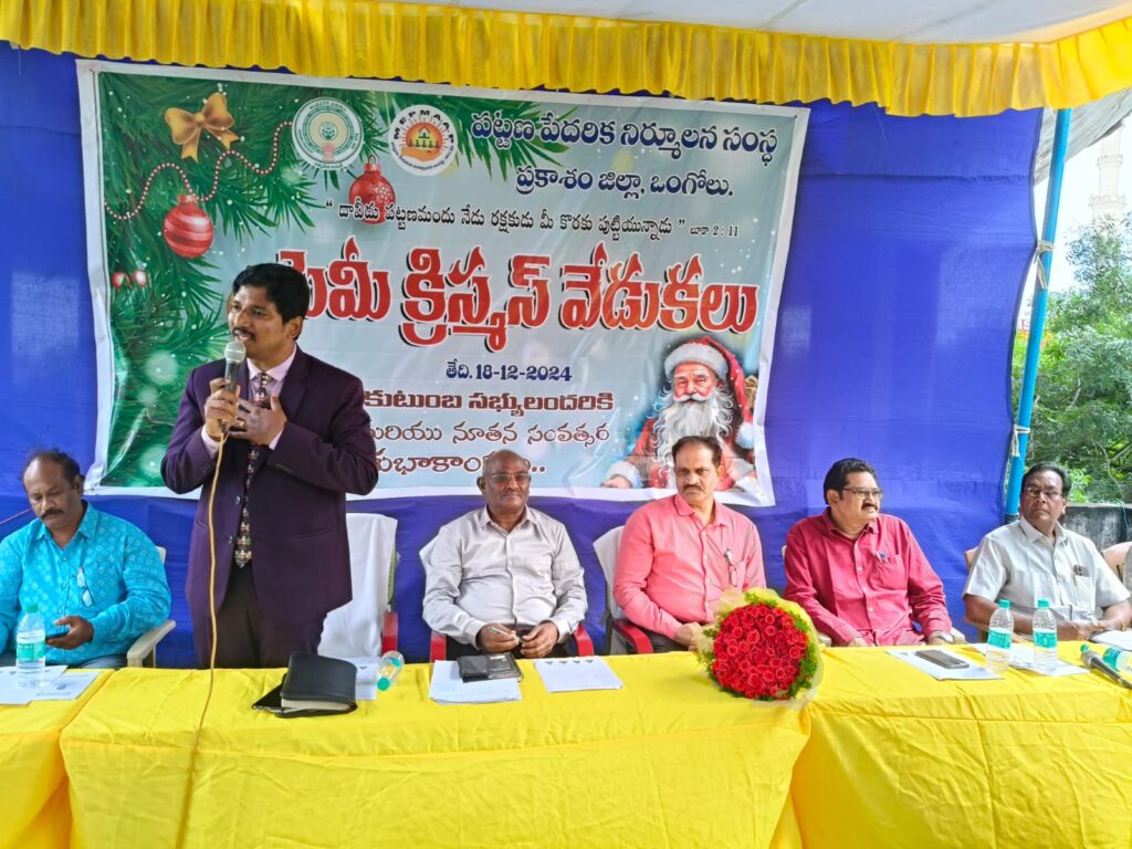 ఈ కార్యక్రమం లో ముఖ్య అతిధులుగా ఎండి. జాఫర్ సాధిక్, ఇండియన్ పోస్టల్ సర్వీస్, సీనియర్ సూపరింటెండెంట్, ప్రకాశం డివిజన్ పోస్ట్ ఆఫీసెస్ మాట్లాడుతూ భారతదేశం పరమత సహనం కలిగిన లౌకిక దేశం, భిన్న మతాలు, ఆచార వ్యవహారాలు, సంస్క్రతి, సంప్రదాయాలుతో జీవన వైవిధ్యం కలిగినప్పటికీ ఎంతో ఐక్యత, సంగీభవంతో జీవిస్తున్నామన్నారు. డిసెంబర్ మాసంలో క్రైస్తవాలు ఎంతో సంతోషంగా జరుపుకొనే క్రిస్టమస్ వేడుకలలో భాగస్వామ్యం అయినందుకు ఆనందంగా ఉందన్నారు. ఈ సందర్బంగా అందరికి ముందస్తు క్రిస్టమస్ మరియు నూతన సంవత్సర శుభాకాంక్షలు తెలిపారు.