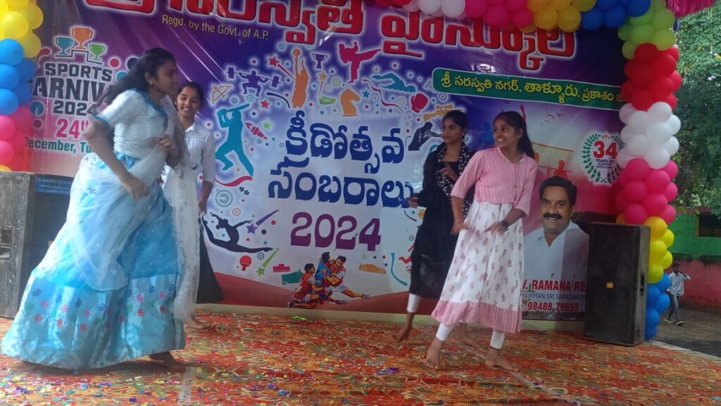 క్రీడా సంబరాలు-24 కార్యక్రమం నిర్వహించారు. ముఖ్య అతిథిగా పాల్గొన్న చైర్మన్ ఎవీ రమణా రెడ్డి, పద్మజ దంపతులు జ్యోతి ప్రజ్వలన చేసి కార్యక్రమాన్ని ప్రారంభించారు. అనంతరం చైర్మన్ ఏవీ రమణారెడ్డి మాట్లాడుతూ …..చదువులతో పాటు క్రీడలు విద్యార్థులకు ముఖ్యమని అన్నారు. క్రీడా స్పూర్తిని నింపటం కోసం విద్యాసంస్థలో గత మూడు రోజుల నుండి క్రీడలు నిర్వహించినట్లు తెలిపారు. ముందుగా సరస్వతి విద్యాసంస్థల డైరెక్టర్ ఎజీ శంకర్ రెడ్డి జన్మదిన వేడుకలు నిర్వహించారు. విద్యార్థులచే సాంస్కృతిక కార్యక్రమాలు నిర్వహించారు. కార్యక్రమంలో విద్యాసంస్థల డైరెక్టర్ గణేష్ రెడ్డి, శంకర్ రెడ్డి, ప్రధానోపాధ్యాయులు శ్రీరామ మూర్తి, వెంకట రత్నం, వెంకా రెడ్డి, ఉపాధ్యాయులు పాల్గొన్నారు.