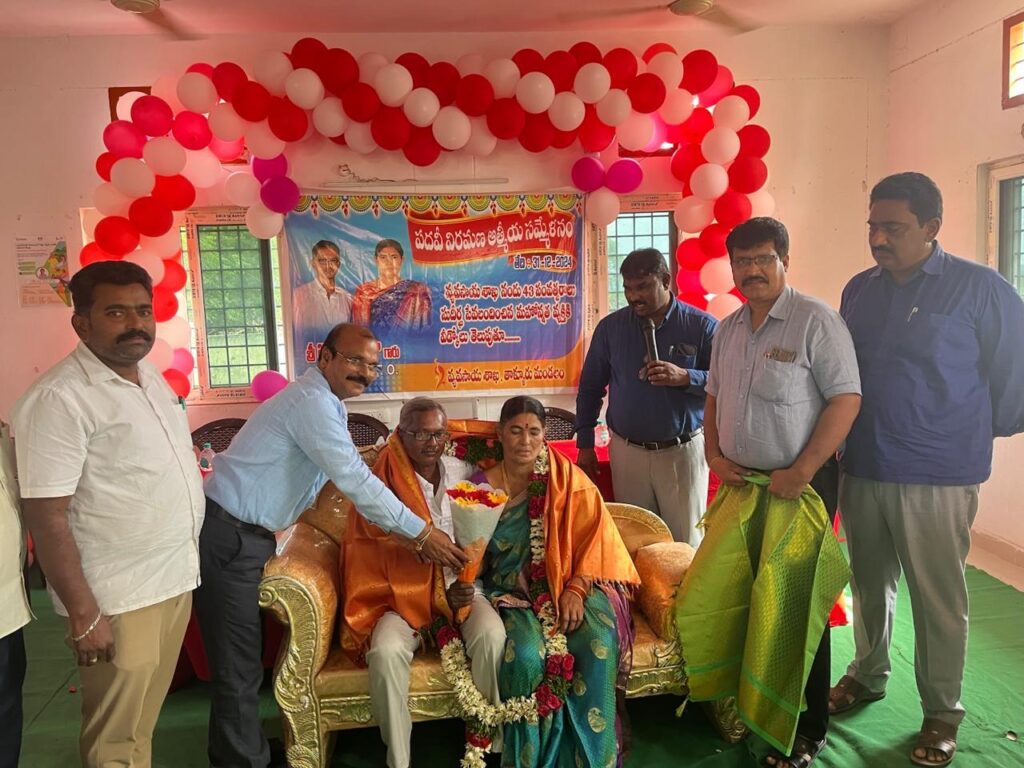కిత భావంతో పని చేసిన ఏఈవో జి.నాగరాజు నేటితరం ఉద్యోగులకు ఆదర్శనీయుడని జిల్లా వ్యవసాయశాఖ అధికారి ఎస్. శ్రీనివాసరావు అన్నారు. పదవీ విరమణ చేస్తున్న ఏఈవో నాగరాజుకు తాళ్లూరు రైతు సేవా కేంద్రం వద్ద వీడ్కోలు సభ నిర్వహించారు. ఈసందర్భంగా జిల్లా అధికారి ఎస్. శ్రీనివాసరావు మాట్లాడుతూ ….గ్రామాల్లో రైతులను, ప్రజలను కలుపుకుని నాగరాజు అందరి మన్ననలు పొందారన్నారు. క్రమశిక్ష ణగా ఏలాంటి సెలవు కూడా పెట్టకుండా, విధులు నిర్వహించి, ఒక్క రిమార్క్ లేకుండా పదవీ విరమణ చెందటం అభినందనీయమాన్నారు. తాళ్లూరు, దర్శి ఎన్పోర్సు మెంట్ ఏ.ఓ, సాంకేతిక శాఖ ఏవో, కోరిశపాడు, అద్దంకి ఏవోలు బిప్రసాద్ రావు, బడే సంగమేశ్వరరెడ్డి, శ్రీనివాసరావు, పి.శ్రీనివాసరావు, కొర్రపాటి వెంకట క్రిష్ణ తదితరులు నాగరాజు వ్యక్తిత్వాన్ని, వృత్తిపట్ల ఉన్న అంకిత భావం గురించి కొనియా డారు. సన్మాణ గ్రహిత ఏఈవో జి.నాగరాజు మాట్లాడుతూ 43 ఏళ్లపాటు విధుల్లో వున్న తనపట్ల ఎంతో ప్రేమగా వున్న అధికారులకు, ఎరువుల దుకాణం డీలర్లకు అభినందనలు తెలిపారు. ముందుగా జిల్లా వ్యవసాయాధికారి శ్రీనివాసరావు నాగరాజు దంపతులనుదుశ్శాలువాతో ఘనంగా సత్కరించారు. నాగరాజు అభిమానులు కూడా సత్కరించారు. ఈ కార్యక్రమంలో పలువురు తాళ్లూరు, దర్శి ఎన్పోర్సు మెంట్ ఏ.ఓ, సాంకేతిక శాఖ ఏవో కోరిశపాడు, అద్దంకి ఏవోలు బిప్రసాదావు, బడేసంగమేశ్వరరెడ్డి, శ్రీనివాసరావు, పి.శ్రీనివాసరావు, కొర్రపాటి వెంకట క్రిష్ణ ఏఈవోలు, విఏఏలు, రైతులు పాల్గొన్నారు.