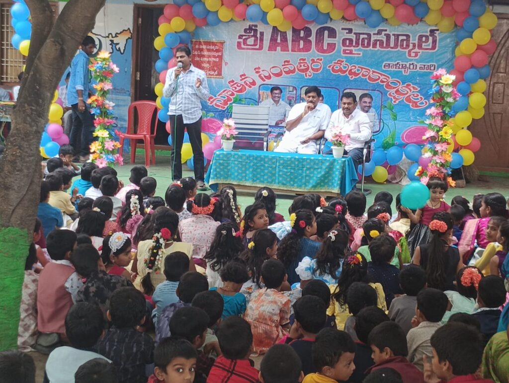 తాళ్లూరు మండలంలోని పలు పాఠశాలల్లో బుధవారం నూతన సంవత్సర వేడుకలు ఉత్సాహంగా నిర్వహించారు. తాళ్లూరు ఎబీసీ ఉన్నత పాఠశాలలో విద్యార్థులు నూతన సంవత్సర వేడుకలు ఘనంగా నిర్వహించారు. విద్యార్థులు తరగతుల వారిగా కేక్ లు కట్ చేసి శుభాకాంక్షలు తెలుపుకున్నారు. చిన్నారులు డ్యాన్స్ లు వేసి ఆనందంతో గడిపారు. కరస్పాండెంట్ టి. శ్రీనివాస రెడ్డి అధ్యక్షతన సభను నిర్వహించారు. కరస్పాండెంట్ శ్రీనివాస రెడ్డి మాట్లాడుతూ ….ఎబీసీ ఉన్నత పాఠశాలలో విద్యార్థుల పురోగతికి ప్రత్యేక ప్రణాళిక పనిచేస్తున్నారని, విద్యార్థులు ఉపాధ్యాయులను సక్రమంగా ఉపయోగించుకుని అభివృద్ధి చెందాలని కోరారు. ప్రధానోపాధ్యాయుడు కె. వెంకటేశ్వరరావు మాట్లాడుతూ… నూతన సంవత్సరంలో గొప్ప లక్ష్యాలను ఏర్పాటు చేసి సాధించే దిశగా కృషి చెయ్యాలని సందేశం ఇచ్చారు. డైరెక్టర్ కాలేషాబాబు మాట్లాడుతూ ప్రతి విద్యార్థి క్రమశిక్షణతో విద్యను అభ్యసించి ఉన్నత శిఖరాలను చేరుకోవాలని కోరారు. అనంతరం నూతన వేడుకలను భారీ కేక్ కట్ చేసి ప్రారంభించారు. చిన్నారులు నృత్యాలు చేసి సంతోషంగా గడిపారు. ఎంఈఓ జి. సుబ్బయ్యను కలసి నూతన సంవత్సర శుభాకాంక్షలు తెలిపారు.