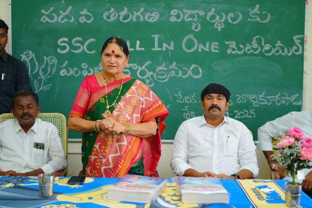 విద్యార్థుల అభ్యున్నతికి తాము ఎల్లవేళలా చేయూత అందిస్తామని జిల్లా పరిషత్ చైర్పర్సన్ బూచేపల్లి వెంకాయమ్మ అన్నారు. బూచేపల్లి వెంకాయమ్మ, సుబ్బా రెడ్డి చారిటబుల్ ట్రస్ట్ ఆధ్వర్యంలో పదవతరగతి విద్యార్థులకు ఆన్ ఇన్ వన్ లు అందించారు. ఈ సందర్భంగా జిల్లా పరిషత్ చైర్ పర్సన్ బూచేపల్లి వెంకాయమ్మ మాట్లాడుతూ …దివంగత ఎమ్మెల్యే బూచేపల్లి సుబ్బా రెడ్డి ఆధ్వర్యంలో బూచేపల్లి ట్రస్ట్ ద్వారా విద్యార్థులను ఆదుకునేందుకు చేపట్టిన కార్యక్రమం కొనసాగిస్తూ పేద విద్యార్థులకు చేయూత ఇస్తున్నట్లు చెప్పారు. తాను విద్యను అభ్యసించిన పాఠశాల అభ్యున్నతికి అనేక విధాలుగా చేయూత అందించామని, అందిస్తూనే ఉంటామని అన్నారు. వైసీపీ జిల్లా పార్టీ అధ్యక్షుడు దర్శి ఎమ్మెల్యే డాక్టర్ బూచేపల్లి శివ ప్రసాద్ రెడ్డి మాట్లాడుతూ అమ్మ, నాన్నలకు పాఠశాల పట్ల గ్రామం పట్ల మమకారం ఎక్కువ అని నిత్యం పాఠశాల అభివృద్ధికి గ్రామ అభివృద్ధికి బాటలు వేసారని గ్రామ ప్రజలు కూడ తమపై అదే మమ కారంతో ఉండటం తమ అదృష్టమని అన్నారు. పేద విద్యార్థుల అభ్యున్నతికి పదవతరగతి విద్యార్థులకు ఎంతో ఉపయుక్తమైన స్టడీ మెటీరియల్ అందిస్తూ చేయూత ఇస్తున్నామని అన్నారు. పాఠశాలలో ఎమైనా సమస్యలు ఉంటే తక్షణ పరిష్కారానికి తగిన చర్యలు తీసుకుంటామని హామీ ఇచ్చారు. ముందుగా దివంగత ఎమ్మెల్యే బూచేపల్లి సుబ్బా రెడ్డికి పూల మబబాలలు వేసి ఘన నివాళులు అర్పించారు.