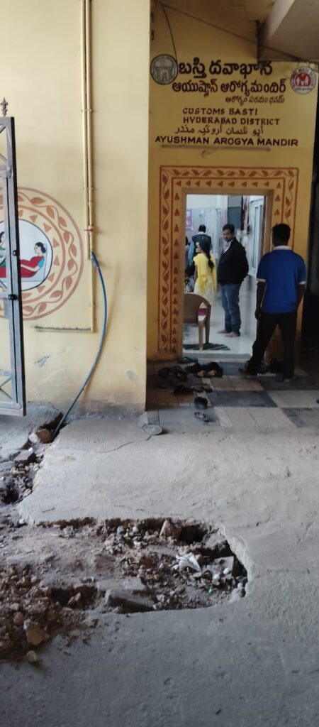 బేగంపేట ఓల్డ్ కస్టమ్స్ బస్తి బస్తీ దవాఖానా వద్ద పైపు వేసేందుకు తవ్వారు.అయితే దాన్ని పూడ్చక పోవడం తో బస్తీ దవాఖానకు వచ్చే వృద్దులు,చిన్నారులు పడిపోతున్నారు. ఈ సమస్య పై అధికారులు తక్షణమే స్పందించి తవ్విన ప్రాంతాన్ని వెంటనే పూడ్పింఛాలని స్థానిక బస్తీ వాసి వాహద్ అధికారులను కోరుతున్నారు.