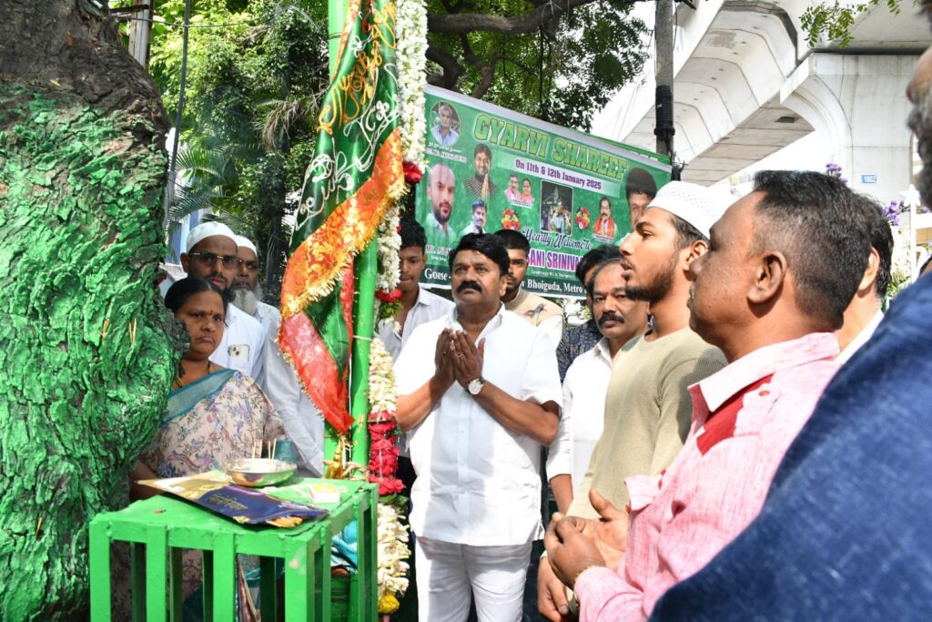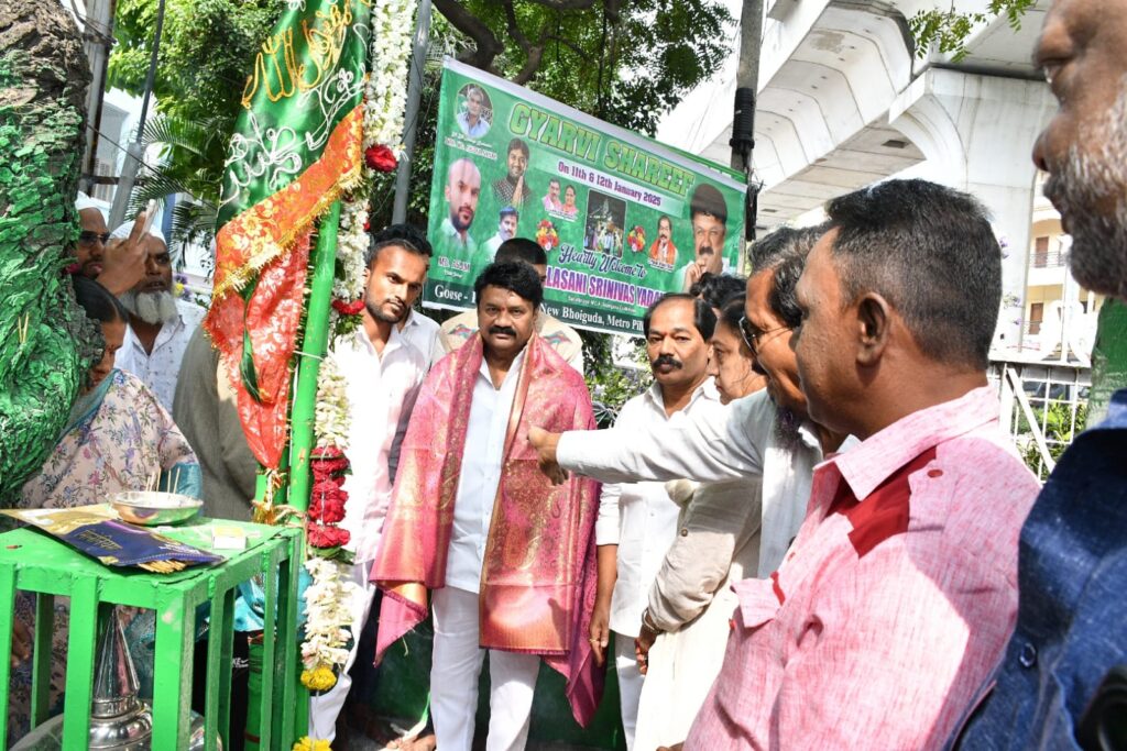 బన్సీలాల్ పేట డివిజన్ లోని న్యూ బోయగూడ లోని రైల్ కళారంగ్ వద్ద ఆదివారం గ్యార్వీ ని నిర్వహించారు. ఈ కార్యక్రమానికి మాజీమంత్రి, సనత్ నగర్ ఎమ్మెల్యే తలసాని శ్రీనివాస్ యాదవ్ హాజరై గౌస్ ఏ పాక్ చిల్లా వద్ద నిర్వహించిన ప్రార్ధనలలో పాల్గొన్నారు. అనంతరం అన్నదాన కార్యక్రమం ప్రారంభించారు. ఈ కార్యక్రమంలో కార్పొరేటర్ కుర్మ హేమలత, లష్కర్ జిల్లా సాధన సమితి అధ్యక్షుడు గుర్రం పవన్ కుమార్ గౌడ్, బి ఆర్ ఎస్ పార్టీ డివిజన్ అధ్యక్షుడు వెంకటేషన్ రాజు, నాయకులు ఏసూరి మహేష్, లక్ష్మీపతి, రమణ, శ్రీకాంత్ రెడ్డి, ఫహీం, కుమార్ యాదవ్, అబ్బాస్, కుషాల్, నిర్వాహకులు ఎం డి అస్లాం, ముర్తుజా, అక్బర్, జావేద్, ఆయూబ్, గౌసియా బేగం, సాజిదా తదితరులు పాల్గొన్నారు.