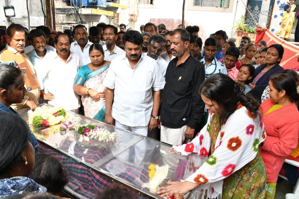 కొండ పోచమ్మ రిజర్వాయర్ లో ఈత కు వెళ్ళి మృతి చెందిన విద్యార్ధుల కుటుంబాలకు ప్రభుత్వం అండగా ఉండి ఆదుకోవాలని మాజీమంత్రి, సనత్ నగర్ ఎమ్మెల్యే తలసాని శ్రీనివాస్ యాదవ్ కోరారు. ఈ ఘటన లో బన్సీలాల్ పేట డివిజన్ లోని సి సి నగర్ కు చెందిన కిషన్, సుమలత దంపతుల కుమారుడు దినేష్ ( 17) కూడా మృతి చెందాడు. విషయం తెలుసుకున్న ఎమ్మెల్యే తలసాని శ్రీనివాస్ యాదవ్ ఆదివారం వారి నివాసానికి వెళ్ళి దినేష్ పార్దీవ దేహంపై పూలమాల వేసి నివాళులు అర్పించారు. అనంతరం తల్లిదదండ్రులను పరామర్శించి తన ప్రగడ సంతాపం, సానుభూతిని తెలిపారు. ఒక్క గానొక్క కుమారుడు దినేష్ మృతదేహం వద్ద కుటుంబ సభ్యులు రోదిస్తున్న తీరు అక్కడ ఉన్న వారిని ఎంతో కలచి వేసింది. ఎమ్మెల్యే తలసాని శ్రీనివాస్ యాదవ్ దినేష్ తండ్రి కి వ్యక్తిగతంగా ఆర్ధిక సహాయం అందించారు. ఈ సందర్బంగా ఆయన మాట్లాడుతూ ఎంతో భవిష్యత్ ఉన్న చిన్నారుల జీవితం ఆర్ధాంతరంగా ముగిసిపోవడం విచారకరం అని పేర్కొన్నారు. గుడికి వెళ్ళొస్తానని చెప్పి ఇంట్లో నుండి బయటకు వెళ్ళిన కొడుకు విగతజీవిగా రావడం ఆ తల్లిదదండ్రులకు తీరని శోకం అని అన్నారు. తమ పిల్లల భవిష్యత్ పై ఎన్నో ఆశలతో ఉన్న తల్లిదండ్రులకు విధి విషాదం మిగిలించిందని ఆవేదన వ్యక్తం చేశారు. ఎంతో సంతోషంగా సంక్రాంతి పండుగ జరుపుకోవాల్సిన వారి ఇండ్లలో ఈ ఘటన తీవ్ర విషాదాన్ని నింపిందని పేర్కొన్నారు. ఈ ఘటన లో మృతి చెందిన విద్యార్ధుల కుటుంబాలకు కూడా తన ప్రగాడ సంతాపం, సానుభూతిని ప్రకటించారు. అంతా నిరుపేద కుటుంబాలని, వారికి ఒక్కో కుటుంబానికి 20 లక్షల రూపాయలు చొప్పున ఆర్ధిక సహాయం అందించి ప్రభుత్వం ఆదుకోవాలని కోరారు. ఎమ్మెల్యే వెంట కార్పొరేటర్ కుర్మ హేమలత, లష్కర్ జిల్లా సాధన సమితి అద్యక్షుడు గుర్రం పవన్ కుమార్ గౌడ్, బి ఆర్ ఎస్ పార్టీ డివిజన్ అద్యక్షుడు వెంకటేషన్ రాజు, నాయకులు ఏసూరి మహేష్, లక్ష్మీపతి, రమణ, శ్రీకాంత్ రెడ్డి తదితరులు ఉన్నారు.