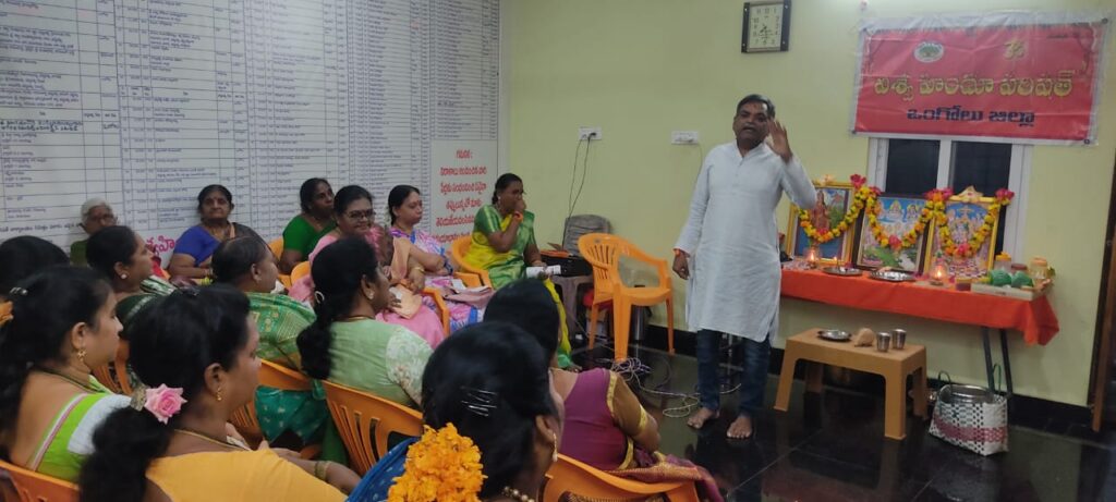 ఆదివారం సాయంత్రం స్థానిక విశ్వహిందూ పరిషత్ కార్యాలయం అయోధ్య భవన్ లో జరిగిన మాతృశక్తి సత్సంగ కార్యక్రమమునకు ముఖ్యఅతిథిగా కర్నూల్ నుండి విచ్చేసిన గౌరి ప్రాణేష్ ప్రసంగించారు.