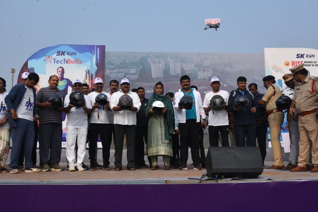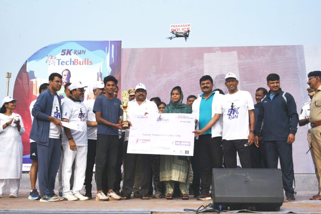 మాదక ద్రవ్యాలకు బానిసై బంగారు భవిష్యత్తును నాశనం చేసుకోవద్దని జిల్లా కలెక్టర్ ఏ.తమీమ్ అన్సారియా చెప్పారు. క్యాన్సర్ పై అవగాహన, మాదకద్రవ్యాల నివారణపై రైజ్ కృష్ణసాయి ఇంజినీరింగ్ కళాశాల, టెక్ బుల్ సంస్థ సంయుక్త ఆధ్వర్యంలో ఆదివారం ఉదయం ఒంగోలు నగరంలో మారథాన్ 5 KM రన్ – 2025 ను నిర్వహించారు. స్థానిక మినీ స్టేడియం వద్ద ప్రారంభమైన ఈ పరుగు మిరియాల పాలెం వద్ద యూ టర్న్ తీసుకోని తిరిగి మినీ స్టేడియం వద్ద ముగిసింది. ఈ పరుగులో విజేతలుగా నిలిచిన పురుషులు మరియు మహిళలు మొదటి బహుమతి -20,000/-, రెండవ బహుమతి -15,000/-, మరియు తృతీయ బహుమతి -10,000/- లను జిల్లా కలెక్టర్ ఏ.తమీమ్ అన్సారియా, జిల్లా ఎస్పీ ఏ. ఆర్ దామోదర్, ఒంగోలు ఎమ్మెల్యే దామచర్ల జనార్ధన్ రావు, సంతనూతలపాడు ఎమ్మెల్యే బీ. యన్ విజయకుమార్ అందచేశారు. రైజ్ కాలేజీ MD భరత్, టెక్ బుల్స్ చైర్మన్ భాస్కర్ రెడ్డి, రైజ్ సెక్రటరీ అండ్ కరెస్పాండెంట్ శిద్ధా హనుమంతరావు మరియు తదితరులు పాల్గొన్నారు.