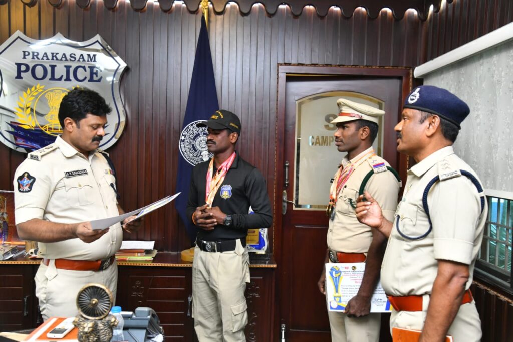 ఈ సందర్బంగా జిల్లా ఎస్పీ ఏ. ఆర్ దామోదర్ మాట్లాడుతూ…. ఒకవైపు జిల్లా పోలీస్ శాఖలో విధులు నిర్వహిస్తూనే మరోవైపు క్రీడల పట్ల ఆసక్తితో నిరంతరం ప్రాక్టీస్ చేస్తూ పతకాలు సాధించి ప్రకాశం జిల్లా పోలీస్ శాఖ ఖ్యాతిని ఇనుమడింపజేయడం గర్వకారణమని, అలాగే త్వరలో బెంగుళూరు లో జరగనున్న జాతీయ మాస్టర్స్ అథ్లెటిక్స్ పోటీలో కూడా సత్తా చాటి జిల్లా పోలీస్ శాఖ కీర్తి ప్రతిష్టలు పెంచాలని కోరారు. జిల్లా పోలీస్ శాఖలో ప్రతిభ గల పోలీస్ సిబ్బంది క్రీడలలో పాల్గొనాలన్నారు. సిబ్బందిలో ఉన్న క్రీడా కౌశల్యాన్ని గుర్తించి, తద్వారా వారిలో పోటీతత్వాన్ని సహకారాన్ని పెంపొందిస్తామని, క్రీడలలో వారికి ప్రోత్సాహం అందిస్తూ అన్ని విధాలా సహకారం అందిస్తామన్నారు.