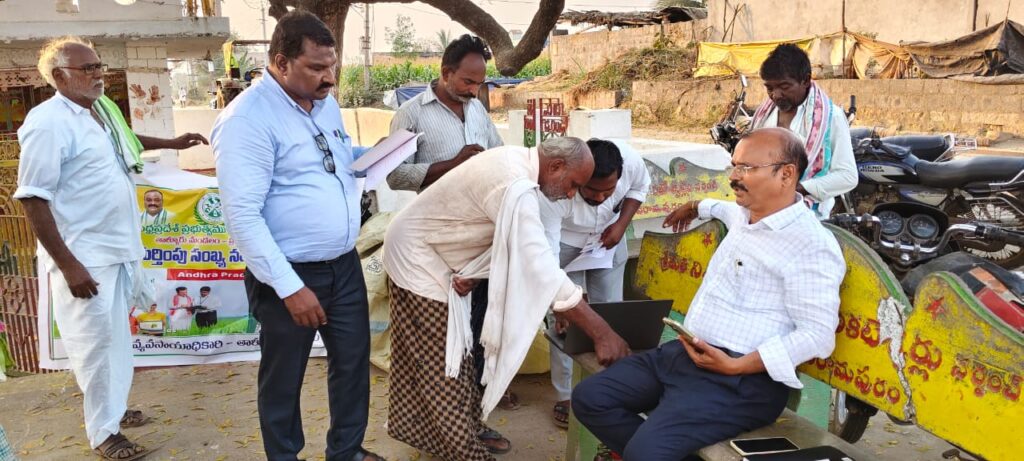 కేంద్ర ప్రభుత్వం ఈ నెల 24 వ తేదీ విడుదల చేయనున్న 19 విడత పిఎం కిసాన్ నిధుల విడుదలకు ప్రతి రైతు తప్ప నిసరిగా ఫార్మర్ రిజిస్ట్రేషన్ చేయించుకోవాలని జిల్లా వ్యవసాయాధికారి ఎస్. శ్రీనివాసరావు తెలిపారు. తాళ్లూరు మండలంలోని తాళ్లూరు1, తాళ్లూరు 2, శివరాంపురం, విఠలాపురం రైతుసేవాకేంద్రాలందు జరుగుతున్న ఫార్మర్ రిజిస్ట్రేషన్ విధానాన్ని శుక్రవారం ఆయన పరిశీలించారు. ప్రస్తుతం పిఎం కిసాన్ కు అర్హులైన రైతులకు సత్వరమే ఫార్మర్ రిజిస్ట్రేషన్ పూర్తి చేయాలన్నారు. త్వరితగిన పిఎం కిసాన్ లబ్ది పొందుతున్న రైతులు రైతుసేవా కేంద్రాలకు వెళ్లి ఓటిపిల ద్వారా రిజిస్ట్రేషన్ చేయించుకోవాలన్నారు. జిల్లాలో ఇప్పటివరకు 1,58,000 మంది రైతుల ఫార్మర్ రిజిస్ట్రే షన్ పూర్తి చేయటం జరిగిందన్నారు. తాళ్లూరు మండల వ్యవసాయాధికారి బి.ప్రసాద రావు మాట్లాడుతూ …. మండలంలోని అన్ని గ్రామాల రైతులు వ్యవసాయశాఖకు సహకరించి సంబందిత వ్యక్తుల ఆధార్ నెంబర్ , ఫోన్, భూమి వివరాలను తెలపాలన్నారు. విఆర్వోలు ఆవివరాలను పరిశీలించి తహసీల్దార్ లాగిన్ లోఅప్రూవ్ చేయాలని, అలా చేయటం వల్ల తప్పులు లేకుండా ఉంటాయన్నారు. ఈకర్యక్రమంలో