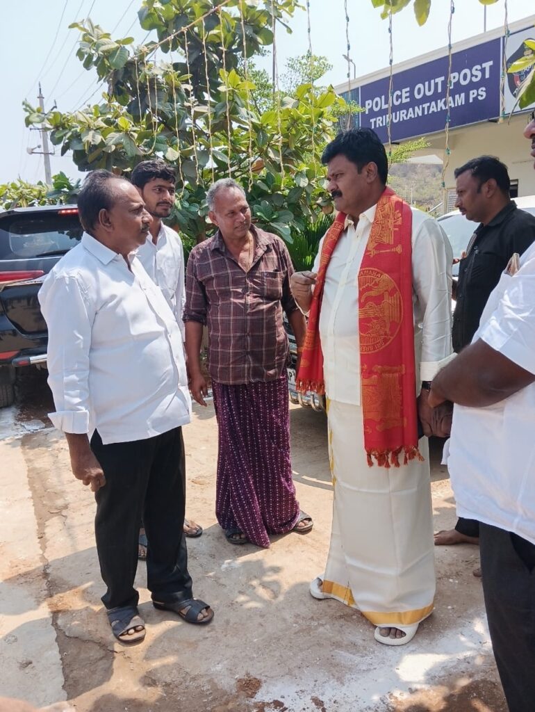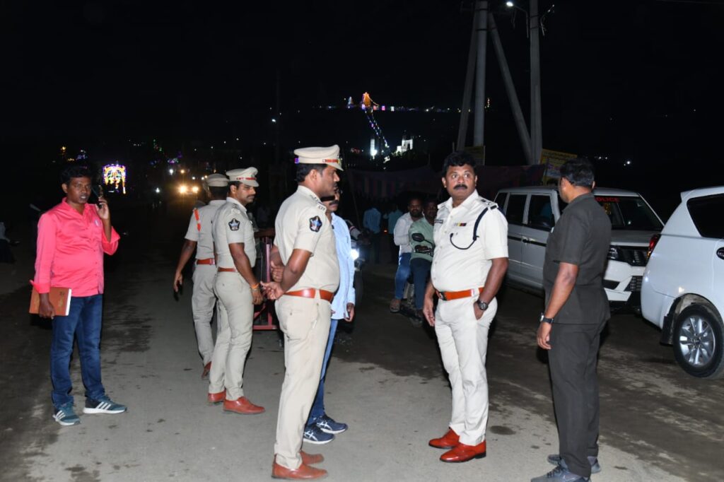 మాట్లాడుతూ…. త్రిపురాంతకంలో శివరాత్రి ఉత్సవాలు మరియు రథోత్సవాలు జరుగుతున్నాయని, పండుగ ఉత్సవాలు, ఊరేగింపులు ప్రశాంతంగా నిర్వహించేందుకు పోలీస్ సిబ్బందితో పటిష్టమైన భద్రతా చర్యలు తీసుకున్నామని, పూర్తి స్ధాయి బందోబస్తుతో అప్రమత్తంగా ఉంటూ, ఎలాంటి అవాంఛనీయ సంఘటనలు చోటుచేసుకోకుండా చర్యలు తీసుకున్నామని తెలిపారు. శుక్రవారం రథోత్సవం సందర్భంగా రూట్ చెక్ చేసి సిబ్బందికి కీలక సూచనలు ఇవ్వటం జరిగిందని, శాంతిభద్రతలకు విఘాతం కలగకుండా పోలీసు అధికారులతో క్రమపద్ధతిన సమీక్ష నిర్వహించామని, ఉత్సవం జరిగే ప్రాంతంలో అసాంఘిక చర్యలకు అవకాశం లేకుండా పర్యవేక్షణ చేస్తున్నామని, దర్శనం మరియు రథోత్సవం సమయంలో భక్తులు, తోపులాటలు లేకుండా పండగ వాతావరణంలో వేడుకలు ఘనంగా నిర్వహించేందుకు సహకరించాలని కోరారు. దేవాలయం వద్ద మరియు రథోత్సవం జరిగే ప్రాంతంలో సిసి కెమెరాల,డ్రోన్ కెమెరా నిఘా ఏర్పాటు చేసేమన్నారు.