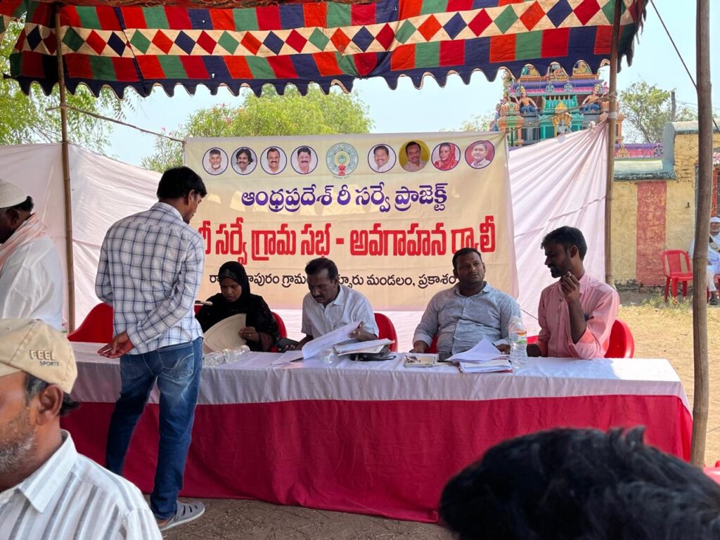 తాళ్లూరుమండలంలోరామభద్రాపురంగ్రామాన్ని మోడల్పైలట్ రీసర్వే గ్రామంగా ఎంపికచేసిఇటీవల జరిగిన రీసర్వేపై ఆగ్రామ సభ అవగాహన సదస్సు శుక్రవారం నిర్వహించారు. గ్రామంలో గత 20 రోజులుగా రీసర్వే నిర్వహించారు. ఈసందర్భంగా తహసీల్దార్ సంజీవరావు మాట్లాడుతూ…. గ్రామంలో సర్వే జరిగిన సమయంలో రైతులకు ముందస్తు నోటీసులు ఇవ్వటం జరి గిందన్నారు. రెవెన్యూ సిబ్బంది రైతుల సమక్షంలోనే భూములకొలతలను తీయటం జగిందన్నారు. కార్యాలయ రికార్డుల ఆధారంగా భూమిలో ఉన్న హక్కుదారుని వివరాలు పూర్తిగా నమోదు చేయటం జరిగిందన్నారు. రీసర్వే ఆధారంగా మ్యుటే షన్ ప్రక్రియ జరుగుతుందన్నారు. రీసర్వే జరిగినందున ఏవైనా అభ్యంతరాలు, స మస్యలు వుంటే రెవెన్యూ అధికారుల దృష్టికి తీసుక వస్తే పరిశీలించి సమస్యను పరిష్కరించం జరుగుతుందన్నారు.