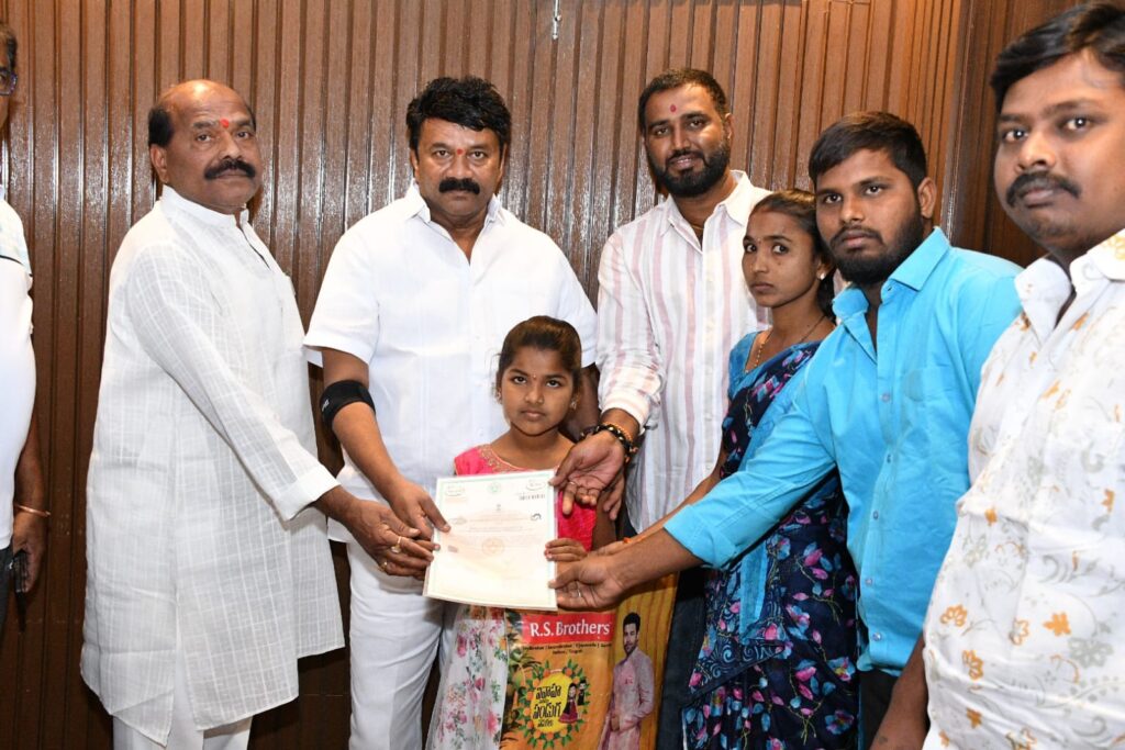 సనత్ నగర్ మార్చ్ 8 (జె ఎస్ డి ఎం న్యూస్) : శ్రీ విద్య చదువుకి అన్ని విధాలుగా అండగా ఉంటా నని మాజీమంత్రి, సనత్ నగర్ ఎమ్మెల్యే తలసాని శ్రీనివాస్ యాదవ్ హామీ ఇచ్చారు. సనత్ నగర్ లోని దాసారం బస్తీకి చెందిన అశోక్, మమత దంపతుల కూతురు శ్రీ విద్య కు ఆధార్ కార్డ్ లేదని స్కూల్ లో చేర్చుకోవడం లేదని తెలుసుకున్న ఎమ్మెల్యే తలసాని శ్రీనివాస్ యాదవ్ వెంటనే స్పందించి ఆధార్ కార్డ్ కు అవసరమైన సర్టిఫికెట్ ఇప్పించేందుకు కృషి చేస్తానని శ్రీ విద్య తల్లిదండ్రులకు భరోసా ఇచ్చారు. ఆ వెంటనే తలసాని శ్రీనివాస్ యాదవ్ ఆదేశాలతో జీ హెచ్ ఎం సి అధికారులు దాసారం బస్తీలోని శ్రీ విద్య ఇంటికి వెళ్ళి వివరాలు సేకరించి ఆధార్ కార్డ్ మంజూరు కు అవసరమైన సర్టిఫికెట్ ( నాన్ అవైలబులిటీ) జారీ చేశారు. శనివారం శ్రీ విద్య తల్లి మమత వెస్ట్ మారేడ్ పల్లి లోని ఎమ్మెల్యే కార్యాలయానికి సనత్ నగర్ కు చెందిన బి ఆర్ ఎస్ నాయకులతో కలిసి చేరుకోగా, ఎమ్మెల్యే చేతుల మీదుగా శ్రీ విద్యకు సర్టిఫికెట్ ను అందజేశారు. ఈ సందర్భంగా ఆయన మాట్లాడుతూ మంచిగా చదువుకోవాలని, ఏ అవసరమున్నా తానున్నానని ధైర్యం చెప్పారు. వెంటనే స్పందించి తమ కూతురుకు సర్టిఫికెట్ మంజూరు చేయించడం పట్ల ఎమ్మెల్యే కు మమత కృతజ్ఞతలు తెలిపారు. ఈ కార్యక్రమంలో సనత్ నగర్ బి ఆర్ ఎస్ డివిజన్ అధ్యక్షుడు కొలన్ బాల్ రెడ్డి, శేఖర్, రాజేష్ ముదిరాజ్ తదితరులు ఉన్నారు.