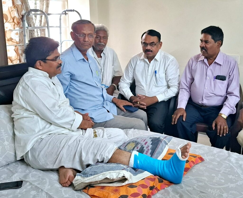 ప్రమాదవశాత్తు జారిపడిన ఘటనలో గాయపడి చికిత్స పొందుతున్న సీనియర్ జర్నలిస్టు, తెలంగాణ ఉద్యమ జర్నలిస్టు నేత పల్లె రవికుమార్ ను పలువురు తెలంగాణ వర్కింగ్ జర్నలిస్ట్స్ ఫెడరేషన్(టీడబ్ల్యూజేఎఫ్) రాష్ట్ర నాయకులు పరామర్శించారు. ఫెడరేషన్ రాష్ట్ర అధ్యక్షుడు మామిడి సోమయ్య, ఉపాధ్యక్షులు పులిపలుపుల ఆనందం, పిల్లి రాంచందర్ తదితరులు గురువారం ఎల్బీ నగర్ లోని ఆయన నివాసానికి వెళ్లి పరామర్శించారు. ఈ సందర్భంగా వారు పల్లె రవిని పలకరించి ప్రమాదం జరిగిన పరిస్థితిపై అడిగి తెలుసుకున్నారు. మూడు రోజుల క్రితం ఉన్నట్టుండి హఠాత్తుగా కళ్ళు తిరిగి కిందపడిపోవడంతో కుడికాలు మడమ వద్ద ఎముక విరిగిందని, వెంటనే శస్త్రచికిత్స చేయించుకున్నానని చెప్పారు. ప్రస్తుతం ఆరోగ్యంగానే ఉన్నానని,నెల రోజుల పాటు విశ్రాంతి అవసరమని డాక్టర్లు చెప్పారని అన్నారు.