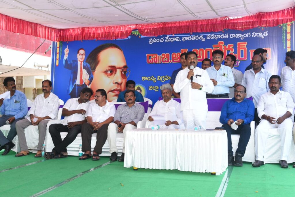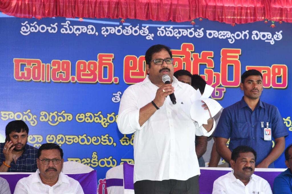 ఈ సందర్భంగా ఏర్పాటుచేసిన సభలో మంత్రి డా. డోలా బాల వీరాంజనేయస్వామి మాట్లాడుతూ…. మానవతావాది ప్రపంచ మేధావి డా. బి. ఆర్ అంబేడ్కర్ గారి విగ్రహాన్ని కలెక్టరేట్ లో ఆవిష్కరించడం ఎంతో సంతోషదాయకమన్నారు. సొంతంగా, స్వచ్చంగా నిబద్దతతో మహనీయులు డా. బి.ఆర్ అంబేడ్కర్ విగ్రహాన్ని ఆంధ్రప్రదేశ్ ప్రభుత్వ దళిత సంఘం జిల్లా కమిటీ ఏర్పాటుచేయడం అభినందనీయం అని, వారికి పేరుపేరునా ధన్యవాదాలు తెలుపుతున్నట్లు మంత్రి తెలిపారు. రాజ్యాంగం ప్రకారం మన హక్కులకు స్పూర్తి కలిగించేలా కలెక్టరేట్ లో డా. బి.ఆర్ అంబేడ్కర్ విగ్రహాన్ని ఏర్పాటుచేయడం అభినందనీయమన్నారు. ఈ రోజు ఎన్నో అవకాశాలు ఆ మహనీయుడి వలన కలిగినప్పటికినీ, వారు ఆశించిన స్థాయిలో మనం ముందుకు పోలేకపోయామన్నారు. ఏ సదుపాయాలు లేని రోజుల్లో వారు విదేశీ విద్యను అభ్యసించి విదేశాల్లో మన్ననలు పొందడం వారి యొక్క బహుముఖ ప్రతిభకు నిదర్శనం అని మంత్రి అన్నారు. వారి ఆశయాలకు అనుగుణంగా కేంద్ర, రాష్ట్ర ప్రభుత్వాలు పేదరికం లేని సమాజానికి కృషి చేస్తున్నారన్నారు. డా బి ఆర్ అంబేద్కర్ స్పూర్తితో కేంద్ర, రాష్ట్ర ప్రభుత్వాలు అమలు చేస్తున్న సంక్షేమ పధకాల ఫలాలు ప్రతి బడుగు బలహీన వర్గాల ప్రజలకు అందించాల్సిన అవసరం ఉందన్నారు. రాష్ట్ర వ్యాప్తంగా ఉన్నటువంటి సంక్షేమ వసతి గృహాలలో, గురుకుల పాటశాలల్లో డా. బి.ఆర్ అంబేడ్కర్ విగ్రహాలను ఏర్పాటుచేయడంతో పాటు వచ్చే విద్యా సంవత్సరం నుండి వారి జీవిత చరిత్ర విద్యార్దులకు తెలిసేలా పుస్తకాలను పంపిణీ చేయడం జరుగుతుందన్నారు. నేడు రాష్ట్రంలో సంక్షేమ వసతి గృహాలలో, గురుకుల పాటశాలల్లో సంస్కరణలతో పాటు వసతులకు పెద్ద పీట వేస్తున్నట్లు మంత్రి తెలిపారు. వచ్చే విద్యా సంవత్సరం నుండి సంక్షేమ హాస్టల్ విద్యార్ధులకు నాణ్యమైన భోజనం అందేలా సన్న బియాన్ని సరఫరా చేయడం జరుగుతుందని మంత్రి తెలిపారు. ఎస్.సి., ఎస్.టి అట్రాసిటి కేసుల బాధితులకు దీర్ఘకాలికంగా పెండింగ్ లో వున్నటు వంటి నిధులను 40 కోట్ల రూపాయలను విడుదల చేయడం జరిగిందిని, ఇంకా 20 కోట్ల రూపాయలు బకాయలు ఉన్నాయని, మే నాటికి పూర్తిగా నిధులు మంజూరు చేసేలా చర్యలు తీసుకోవడం జరుగుచున్నదని మంత్రి తెలిపారు.