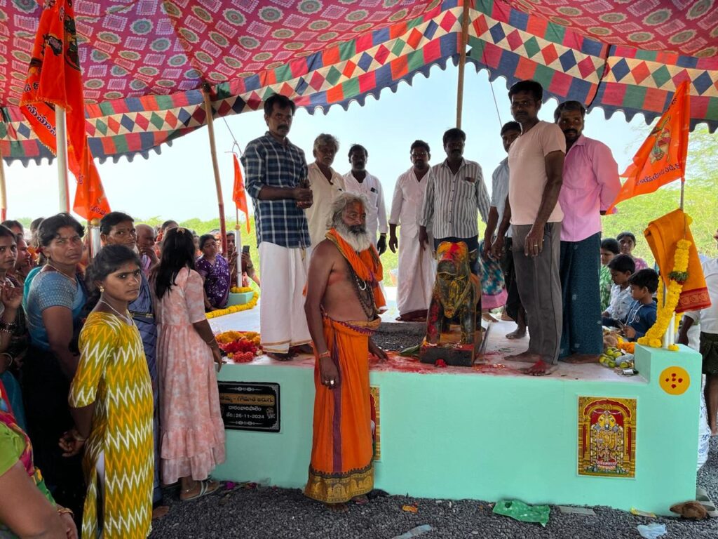 గ్రామంలో రాములవారి దేవాలయ ప్రతిష్ఠ సమయంలో గోమాతను దేవుని ఆవుగా వదిలారు. ఆగోమాత నిత్యం గ్రామంలో తిరుగుతుండేది. ప్రతి ఇంటి వారు ఆవుకు ఆహార పదార్థాలు అందించేవారు. దీంతో ప్రతిఒక్కరూ గోమా తపై ప్రేమాభిమానం పెంచుకున్నారు. గత నవంబరులో ఆవు మృతి చెందినప్పుడు ప్రత్యేక వాహనంపై గ్రామంలో ఊరేగింపు నిర్వహించి గ్రామ శివారున దోర్నపువాగు ఒడ్డున ఖాళీ స్థలంలో ఖననం చేశారు. దేవునిఆవు జ్ఞాపకాలను మరిచిపోలేని గ్రామస్థులు కలిసికట్టుగా సమాధి నిర్మించాలని తలంచారు. మూడు నెలల క్రితం మృతి చెందిన దేవుని ఆవుకు సమాధి నిర్మించారు. సమాధిపై ఆవు విగ్రహాన్ని ప్రతిష్ఠించేందుకు తయారుచేయించిన విగ్రహాన్ని శని వారం గ్రామంలో ఊరేగించారు. గ్రామస్థులు, అధిక సంఖ్యలో మహిళలు సమాధి వద్దకు వచ్చి పూజలు చేసి విగ్రహాన్ని సమాధిపై ఏర్పాటుచేసి తమ అభిమానాన్ని చాటుకున్నారు. పూజారి నరసింహారావు ఆధ్వర్యంలో పూజా కార్య క్రమాలు, విగ్రహ ప్రతిష్ఠ కార్యక్రమాలు జరిగాయి.