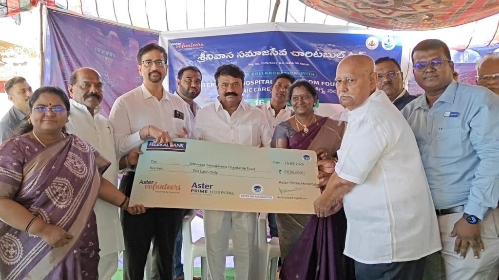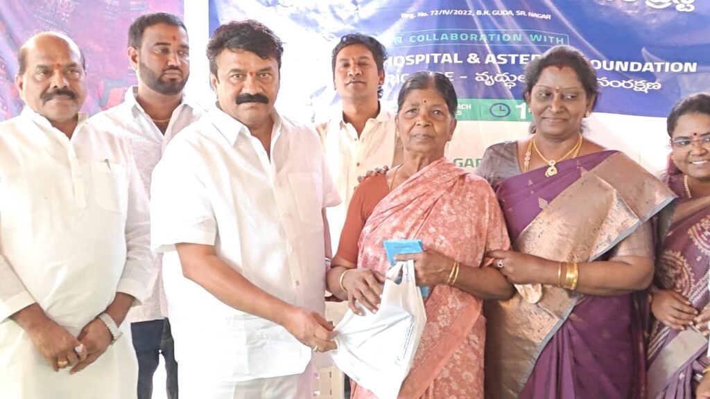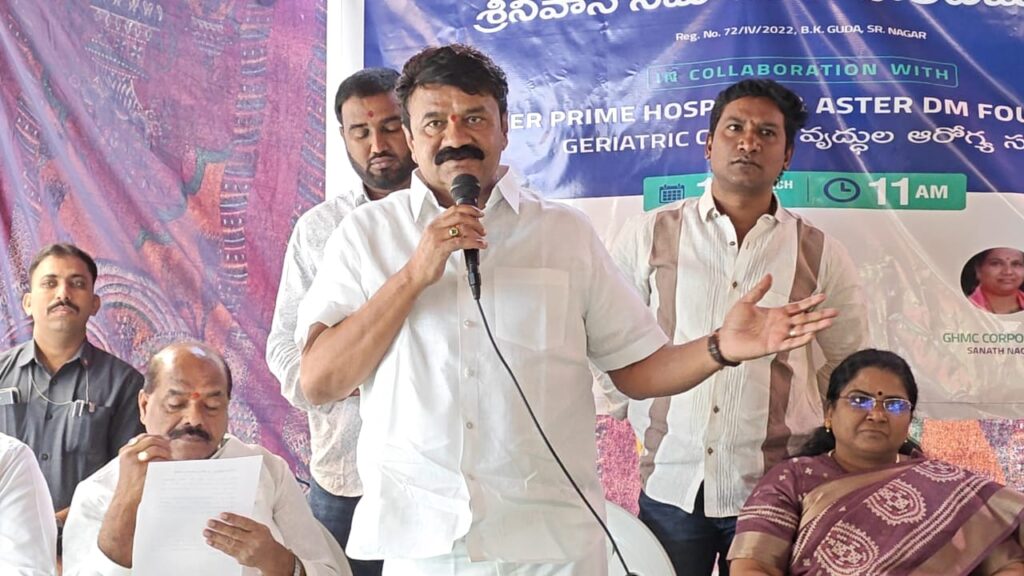 సామాజిక సేవా కార్యక్రమాల నిర్వహణతో పాటు తమ ఆరోగ్యం విషయంలో కూడా తగిన జాగ్రత్తలు తీసుకోవాలని సీనియర్ సిటిజన్స్ ను మాజీమంత్రి, సనత్ నగర్ ఎమ్మెల్యే తలసాని శ్రీనివాస్ యాదవ్ కోరారు. ఆదివారం సనత్ నగర్ లోని బి కే గూడ లో శ్రీనివాస సమాజ సేవా చారిటబుల్ ట్రస్ట్, ఆస్టర్ ప్రైమ్ హాస్పిటల్ ల ఆధ్వర్యంలో ఏర్పాటు చేసిన కార్యక్రమంలో సీనియర్ సిటిజన్స్ కు వైద్య పరీక్షల పరికరాలు, ట్యాబ్ లెట్స్ లతో కూడిన కిట్ లను పంపిణీ చేశారు. ఈ సందర్భంగా ఎమ్మెల్యే తలసాని శ్రీనివాస్ యాదవ్ మాట్లాడుతూ తమ వయసును సైతం లెక్క చేయకుండా అనేక సేవా కార్యక్రమాలలో ఎంతో ఉత్సాహంగా పాల్గొంటున్నారని చెప్పారు. ప్రతి సంవత్సరం వేసవి కాలంలో పేదలకు అన్నదాన కార్యక్రమం నిర్వహిస్తూ వేలాదిమంది ఆకలి తీరుస్తున్నారని, ఉచిత వైద్య శిబిరాల నిర్వహణ, పేద విద్యార్థులకు పుస్తకాల పంపిణీ వంటి కార్యక్రమాలు నిర్వహిస్తున్న విషయాన్ని గుర్తు చేశారు. ఆస్టర్ ప్రైమ్ హాస్పిటల్ యాజమాన్యం శ్రీనివాస సమాజ సేవ చారిటబుల్ ట్రస్ట్ కు ఎమ్మెల్యే తలసాని శ్రీనివాస్ యాదవ్ చేతుల మీదుగా సి ఎస్ ఆర్ ఫండ్ క్రింద 10 లక్షల రూపాయల ఆర్థిక సహాయం చెక్కును అందజేశారు. సీనియర్ సిటిజన్స్ ఆరోగ్య పరిరక్షణ కోసం ఆర్ధిక సహాయం అందించడం పట్ల హాస్పిటల్ యాజమాన్యాన్ని అభినందించారు. ఈ కార్యక్రమంలో మాజీ కార్పొరేటర్ నామన శేషుకుమారి, సనత్ నగర్ బి ఆర్ ఎస్ అధ్యక్షుడు కొలన్ బాల్ రెడ్డి, శ్రీనివాస సమాజ సేవ చారిటబుల్ ట్రస్ట్ ట్రస్టీ పార్థసారధి, మాణిక్ రావ్ పాటిల్, ప్రైమ్ హాస్పిటల్ ప్రతినిధులు డాక్టర్ లు సుష్మ, రవి శంకర్, అనంత రెడ్డి, కృష్ణారెడ్డి, అమీర్ పేట డివిజన్ అధ్యక్షుడు హన్మంతరావు, నాయకులు ప్రవీణ్ రెడ్డి, కరుణాకర్ రెడ్డి, రాజేష్ ముదిరాజ్, కూతురు నర్సింహ, గోపిలాల్ చౌహాన్, బలరాం, వనం శ్రీనివాస్, హరి, మధు తదితరులు ఉన్నారు.